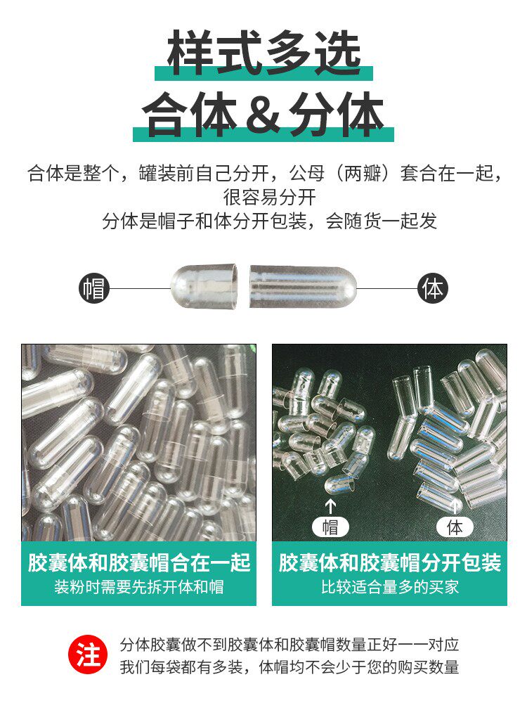 海藻多糖1# 胶囊壳可罐装任何粉植物可食用口服外壳胶皮150粒/瓶
