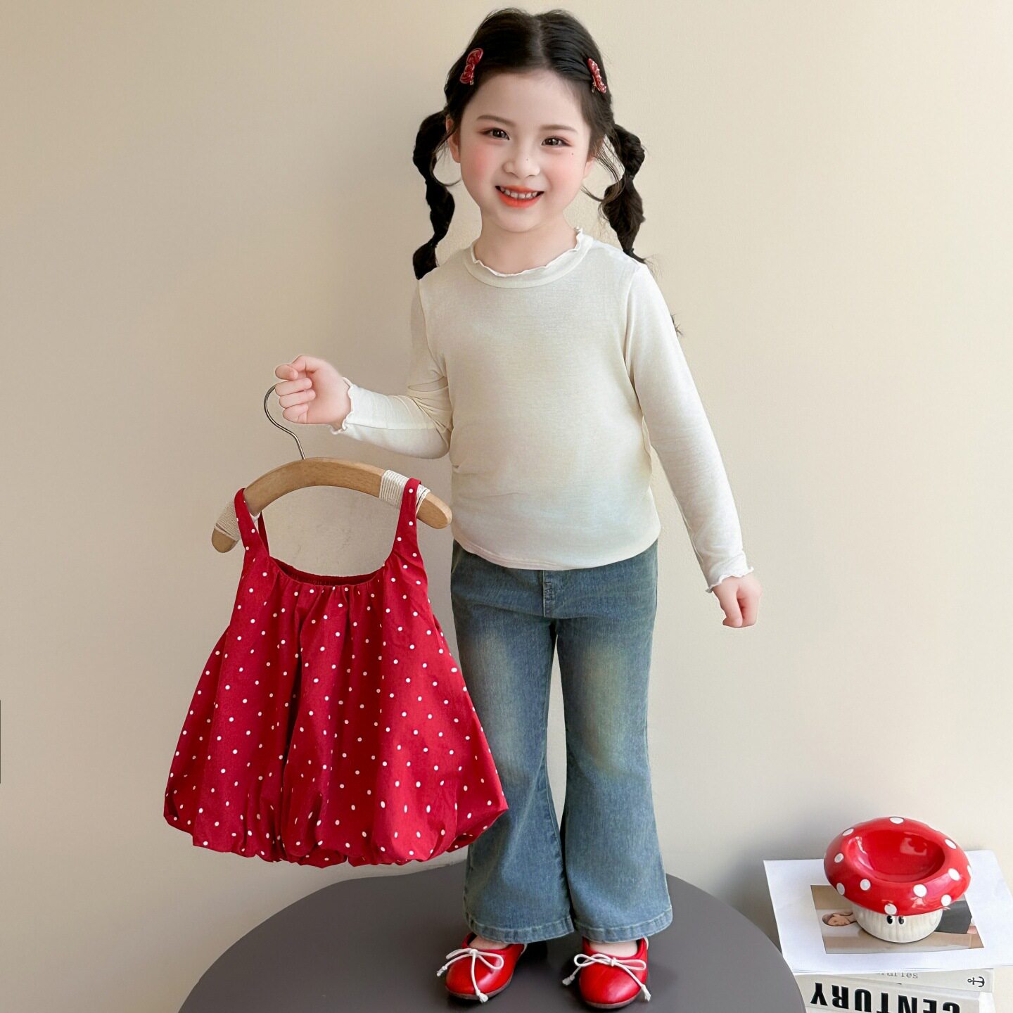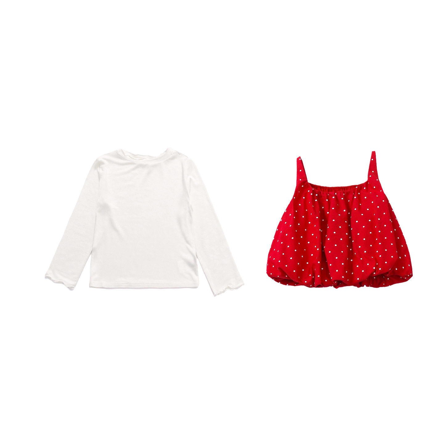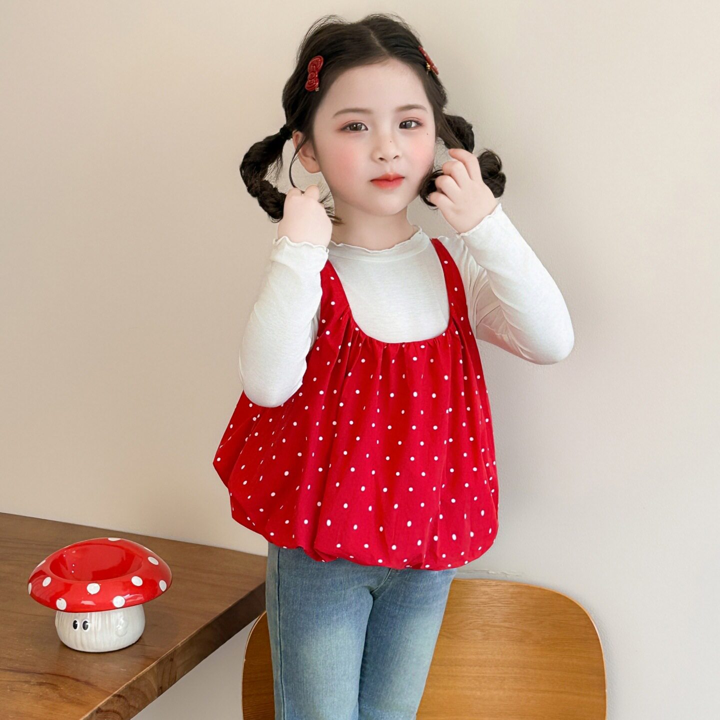 女童超好看红色套装春装2026新款儿童圆点衣服春秋季女宝吊带背心