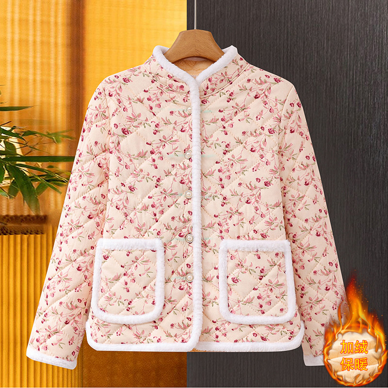 中老年秋冬装棉衣加绒加厚妈妈保暖棉服大码宽松碎花棉袄外套立领
