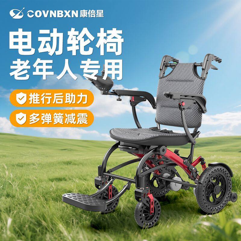 康倍星减震电动轮椅智能全自动轻便可折叠老人专用代步车带后助力