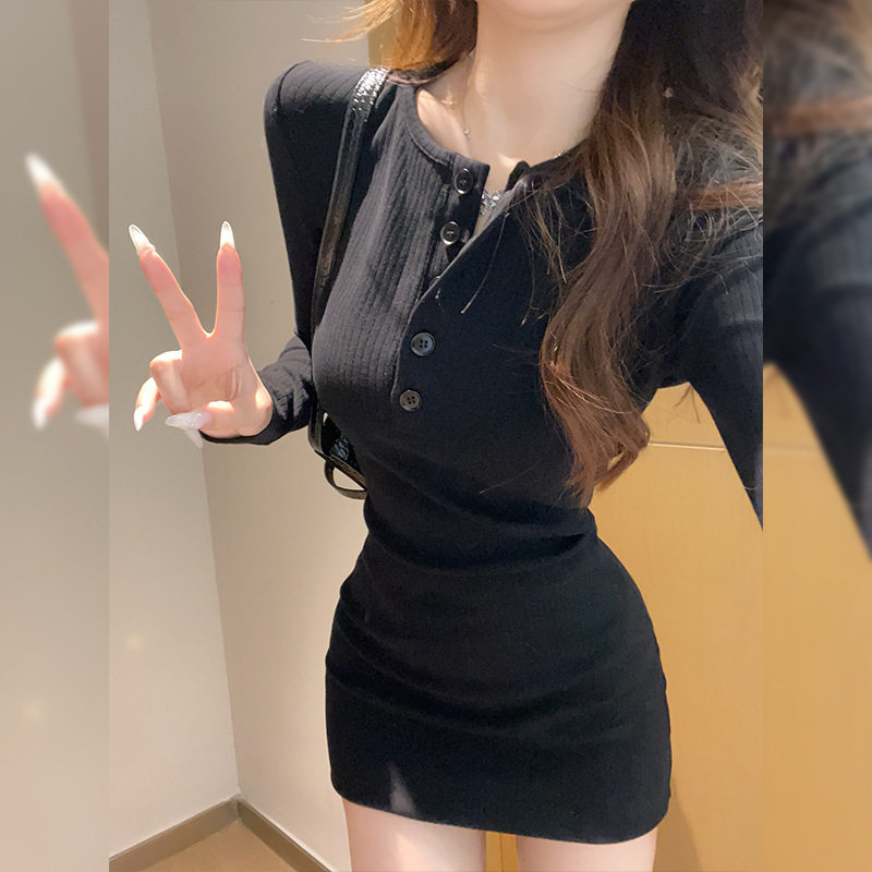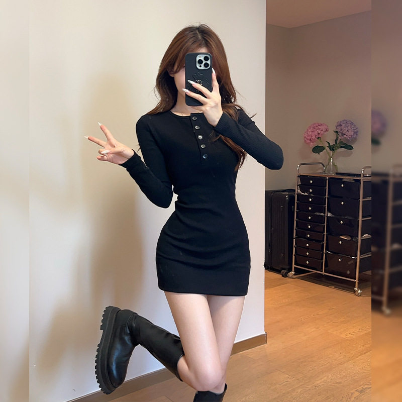 入秋连衣裙女春2026新款高级感修身黑色长袖包臀短裙子套装