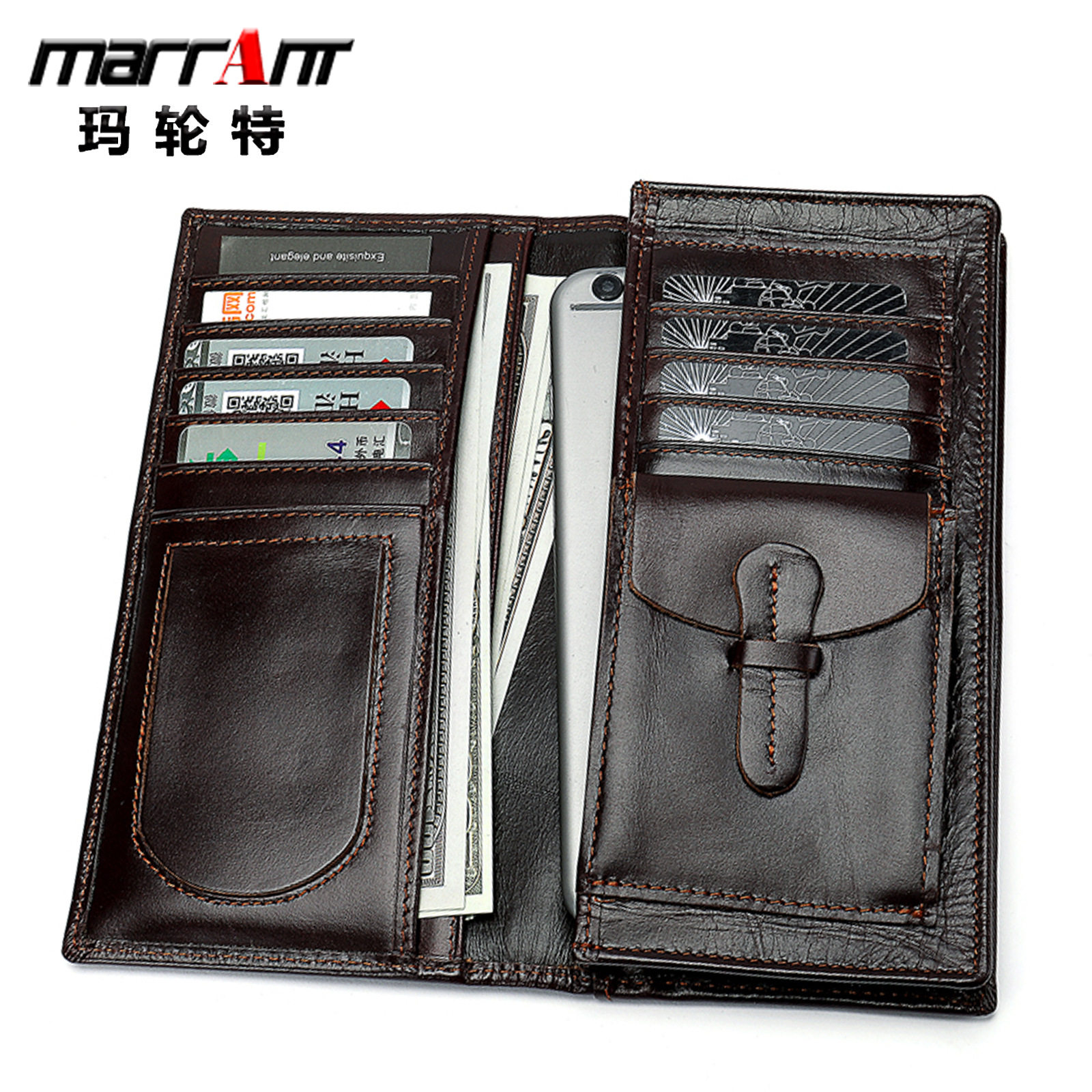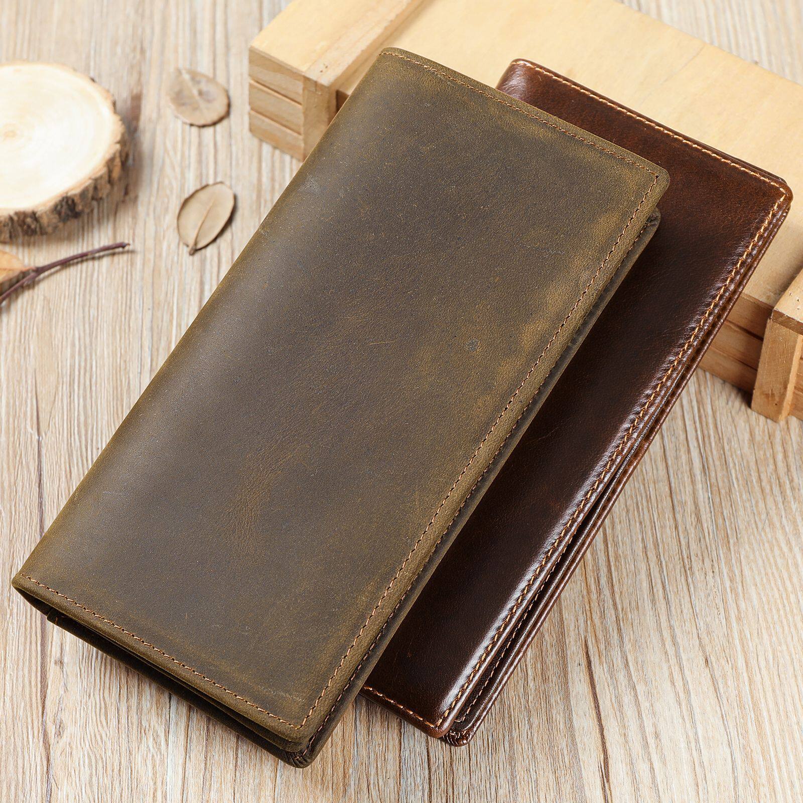 跨境男士长款真皮钱包多卡位商务零钱包牛皮美金夹wallet