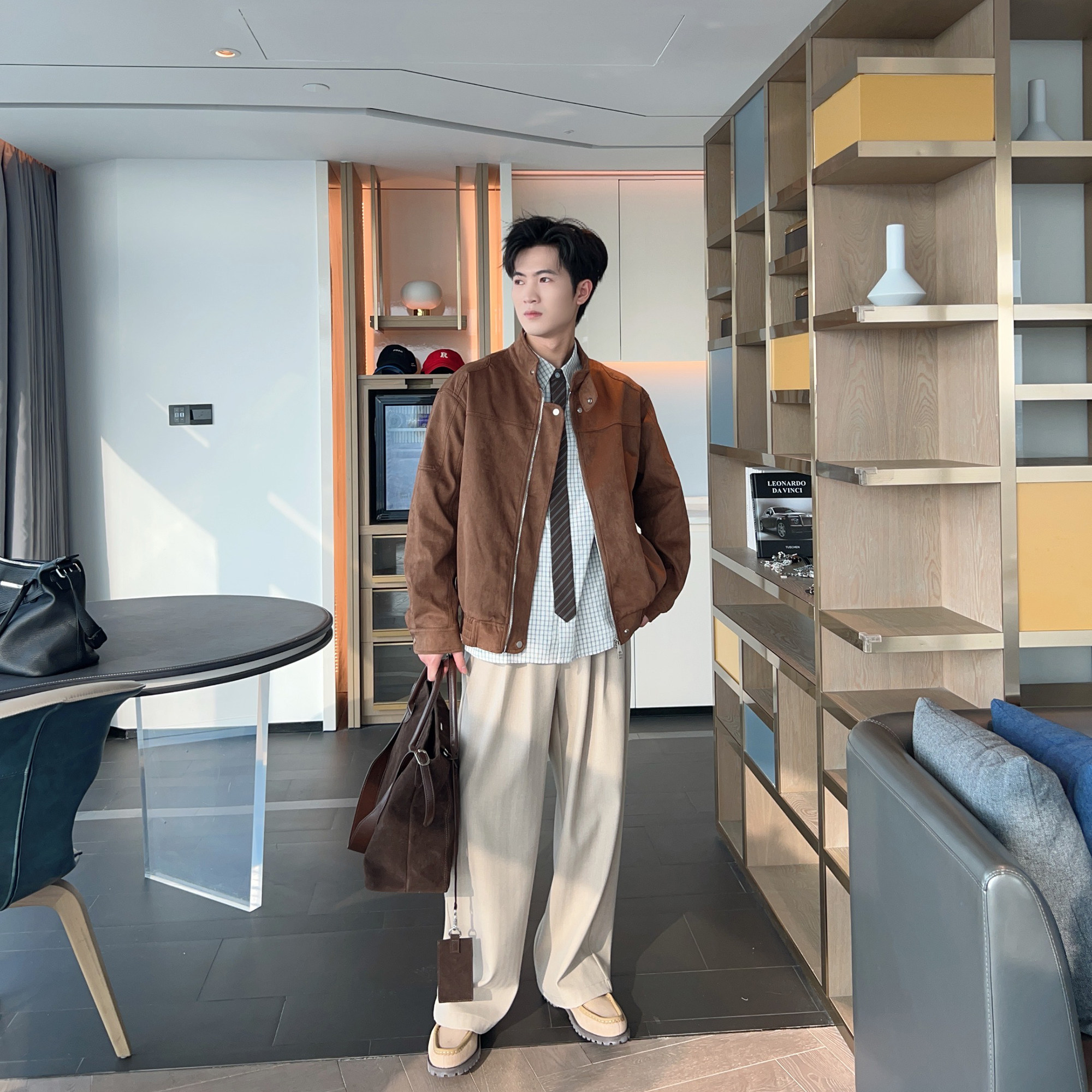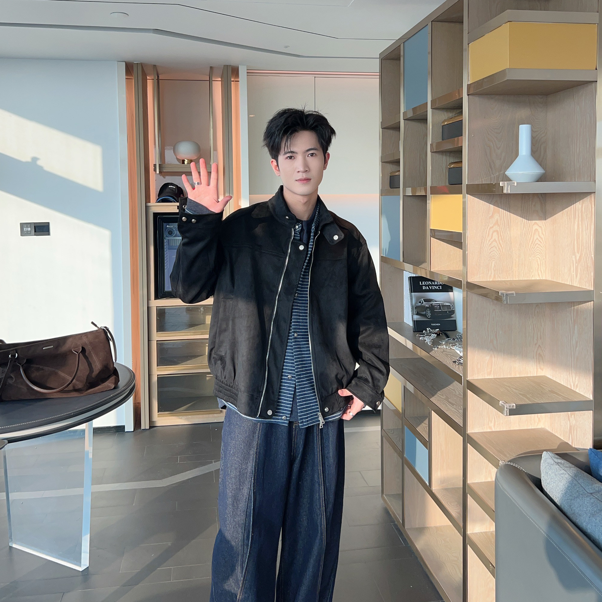 2026春装新款老钱风麂皮绒夹克外套男款高级感复古机车风痞帅上衣