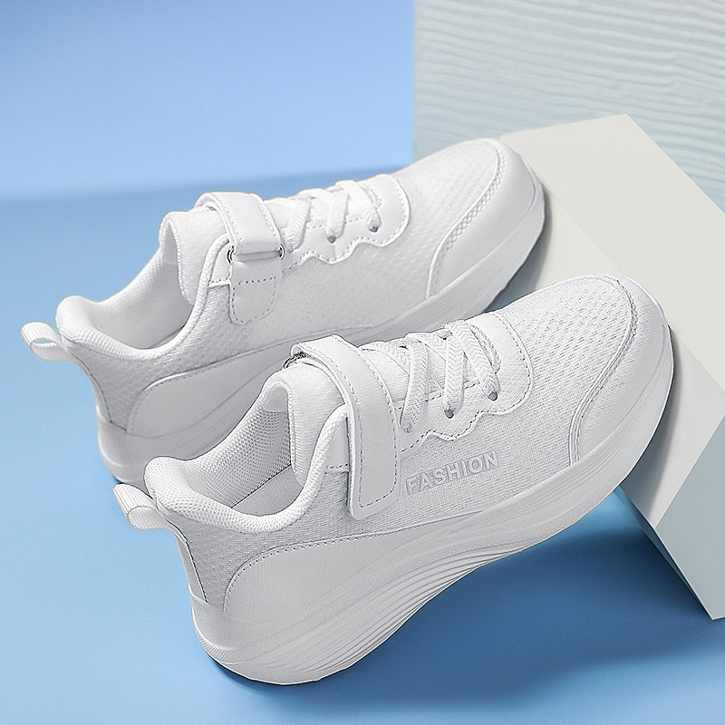 儿童白色运动鞋男童小白鞋女童校鞋皮面网面透气板鞋小学生白鞋子
