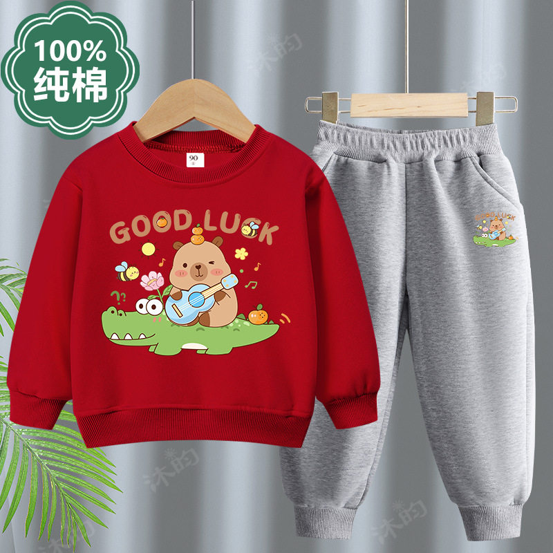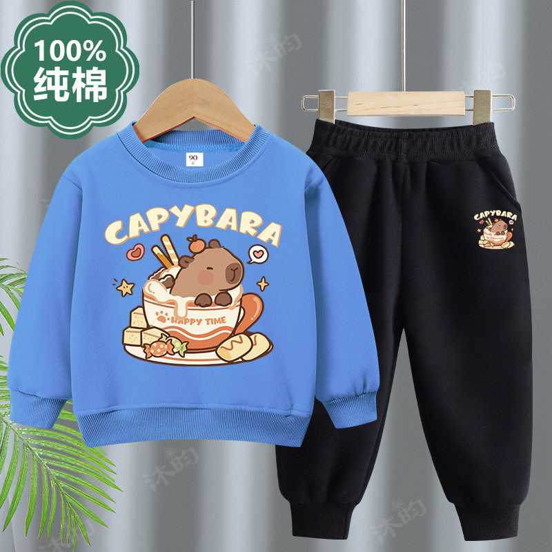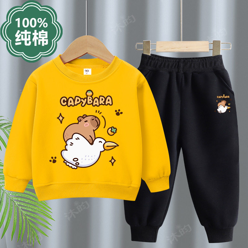 男女童套装纯棉儿童长袖卫衣春装薄款卡通自愿上学的卡皮巴拉衣服