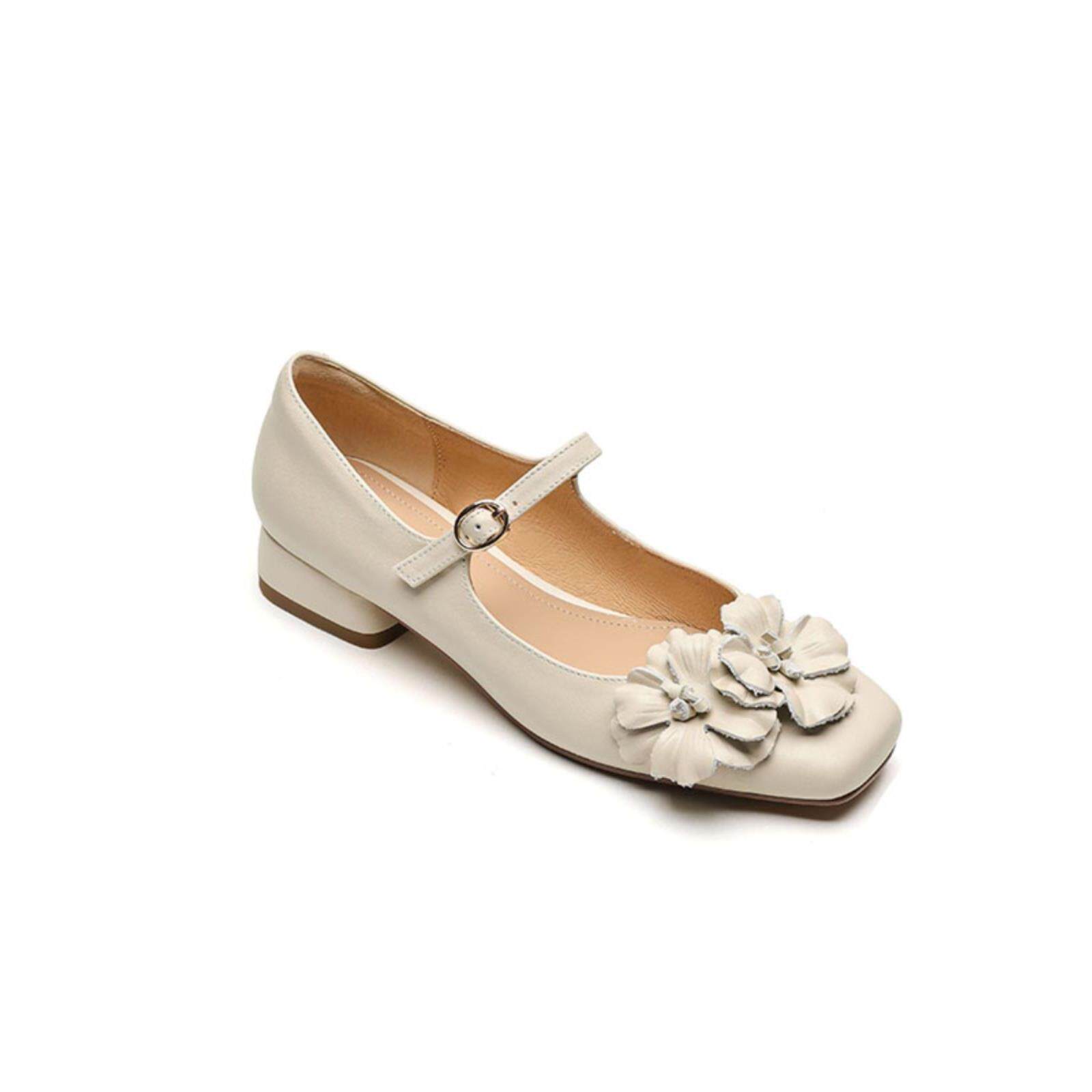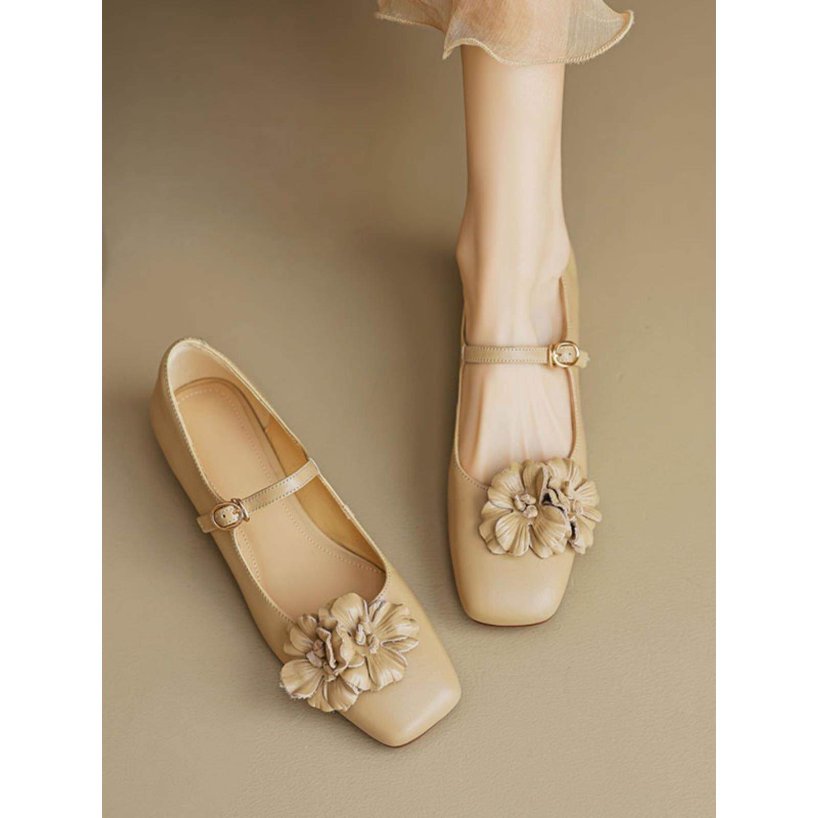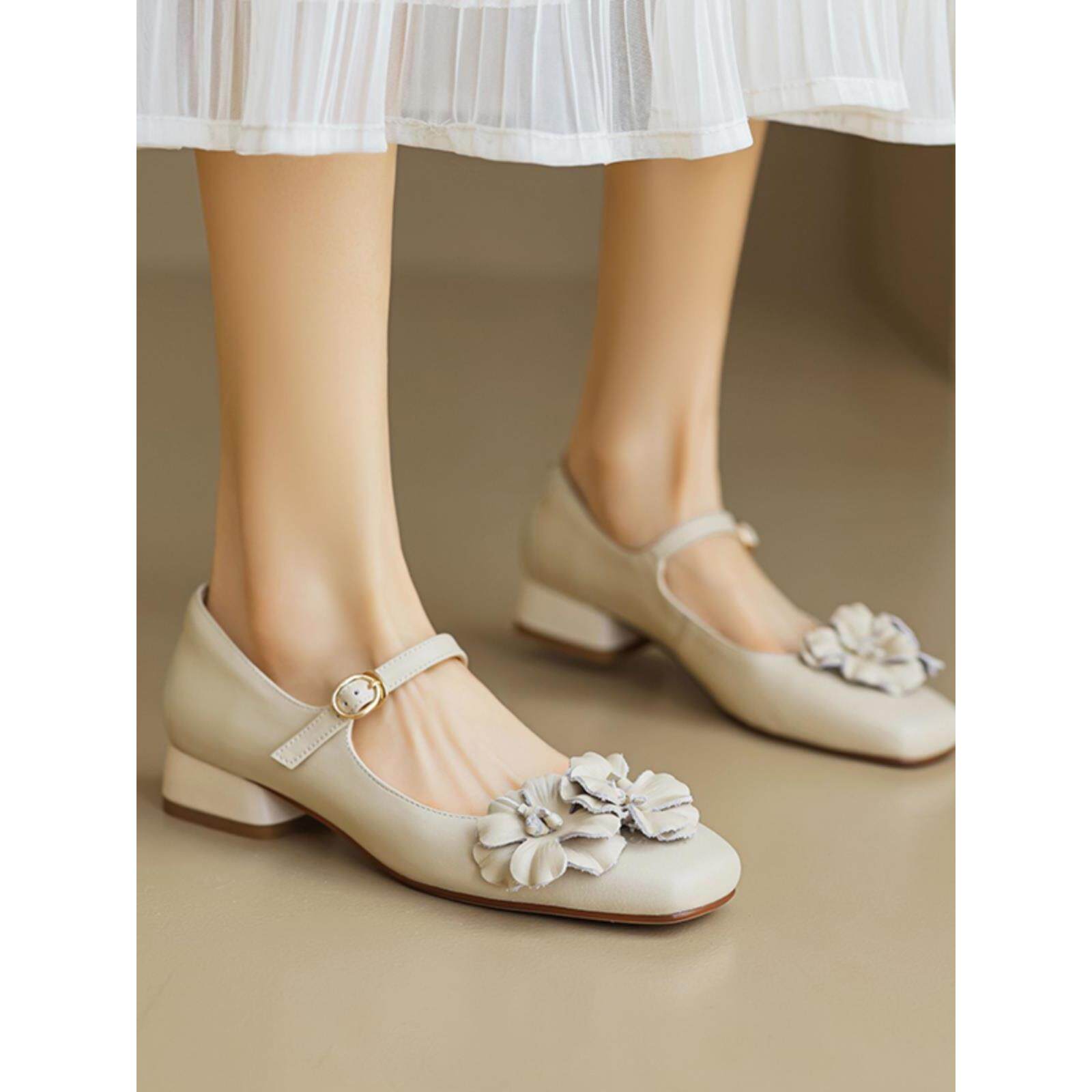 浅口配2025裙子女鞋单鞋平底花朵玛丽小法式皮鞋珍真皮春夏新款女