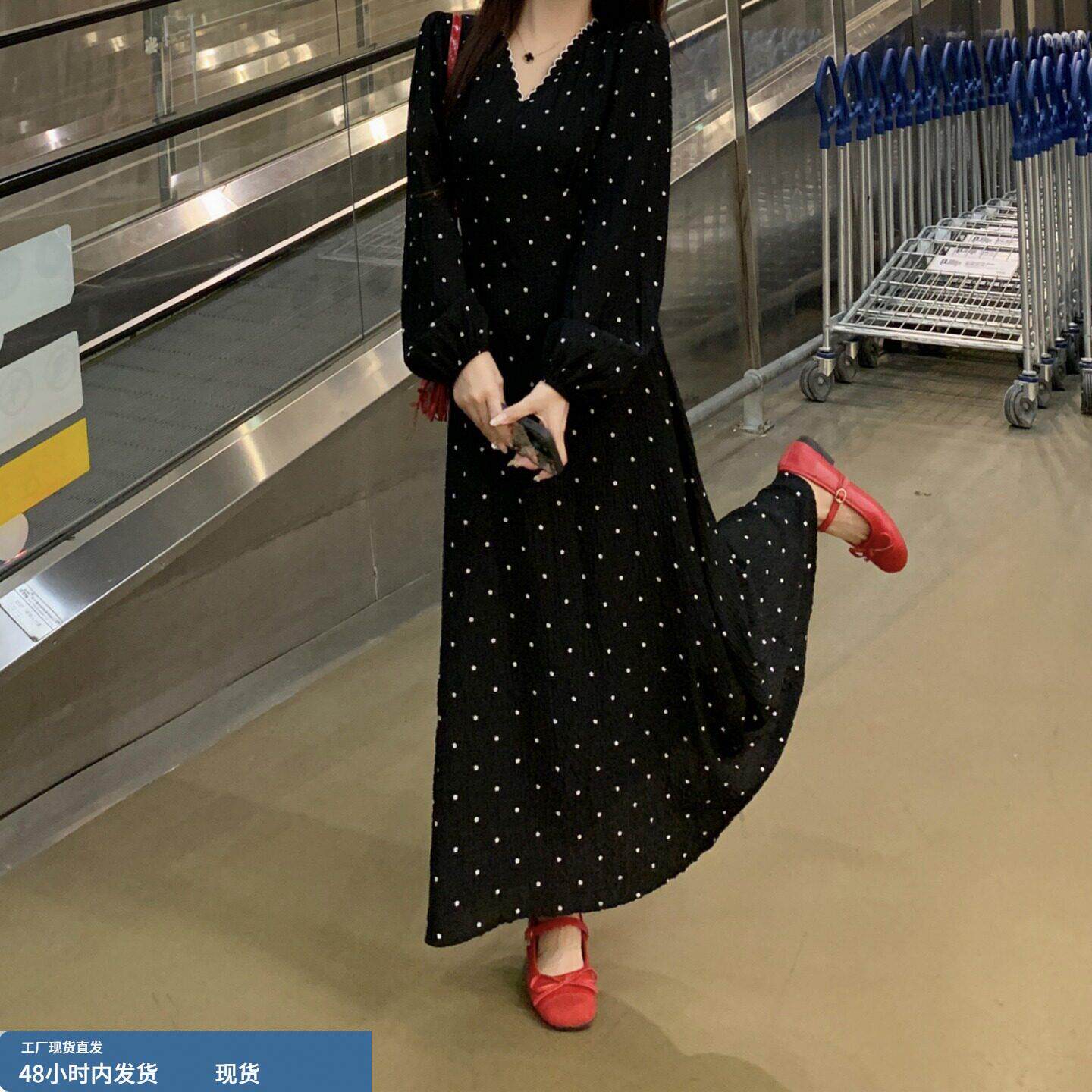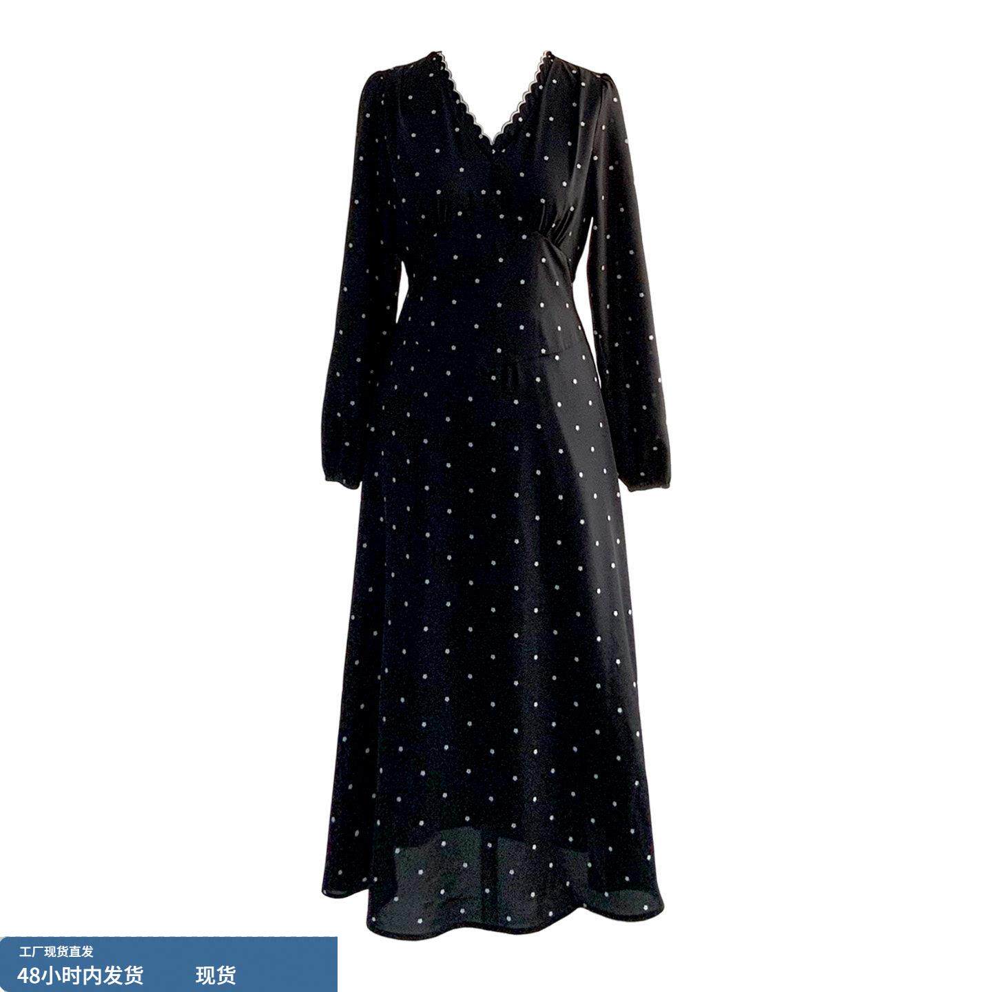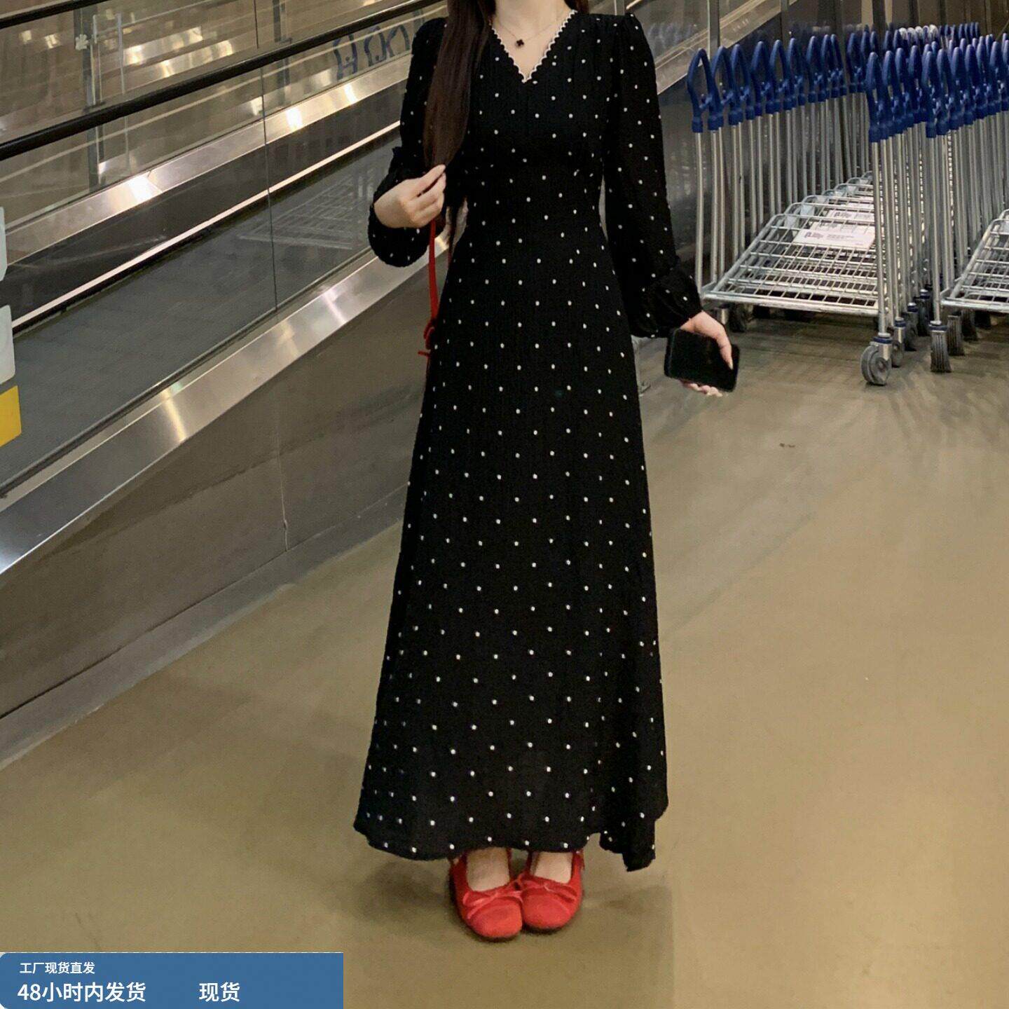 145小矮个子长袖连衣裙子女春秋150显高穿搭收腰法式A字中长裙xs