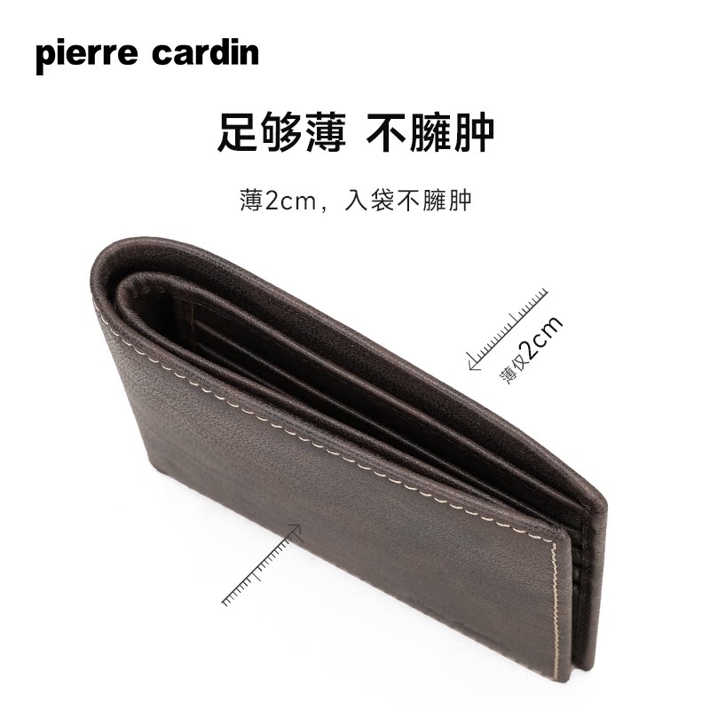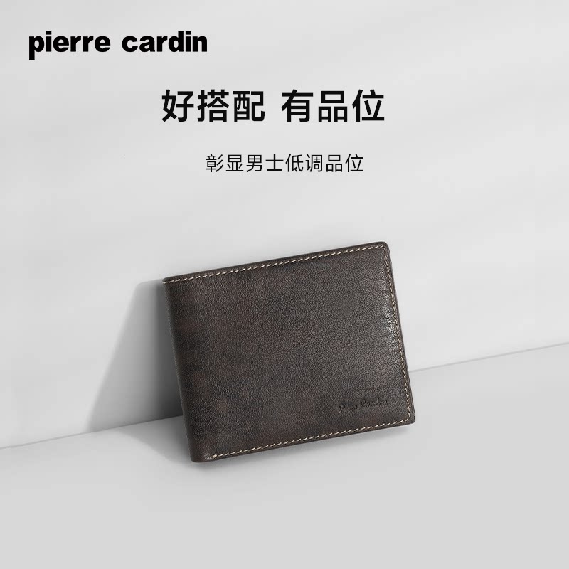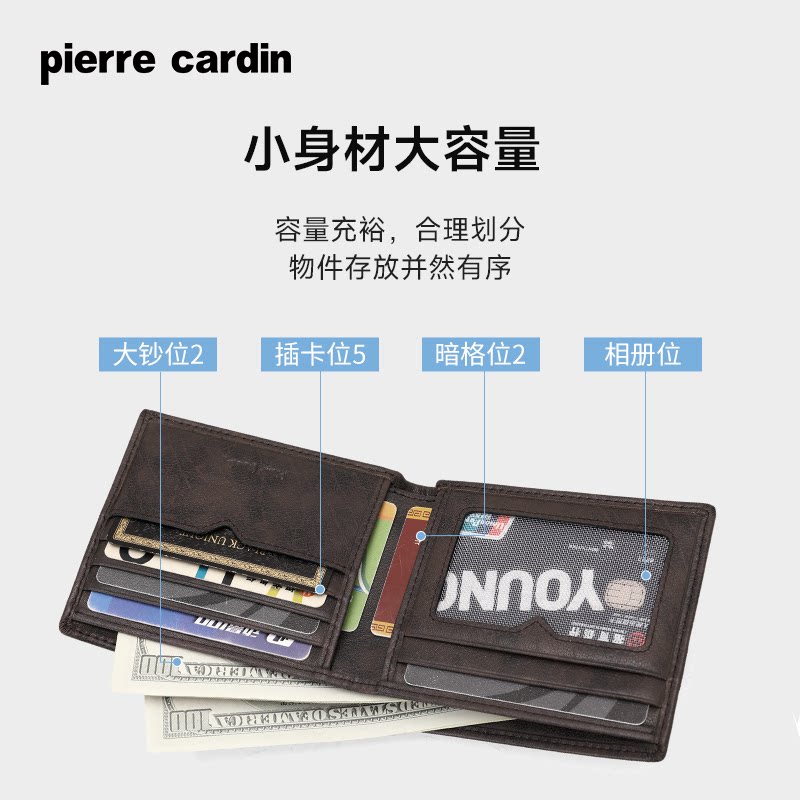 皮尔卡丹真皮钱包男士新款短款头层牛皮钱夹横款轻奢品牌钱票夹