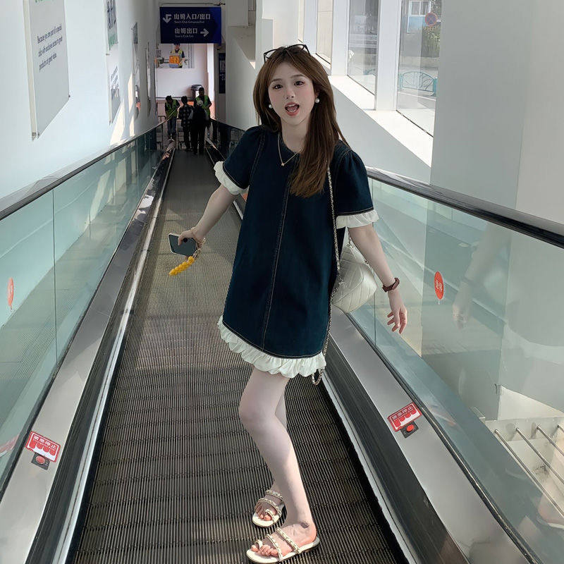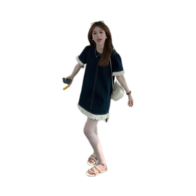 今年流行的漂亮裙子女夏2025新款小个子连衣裙蕾丝花边牛仔a字裙