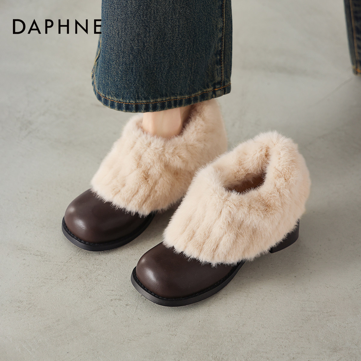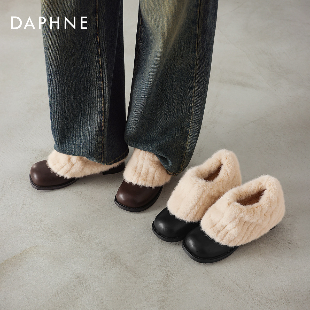 达芙妮高跟雪地靴女款2025新款冬季加绒加厚短靴子毛毛鞋保暖棉鞋