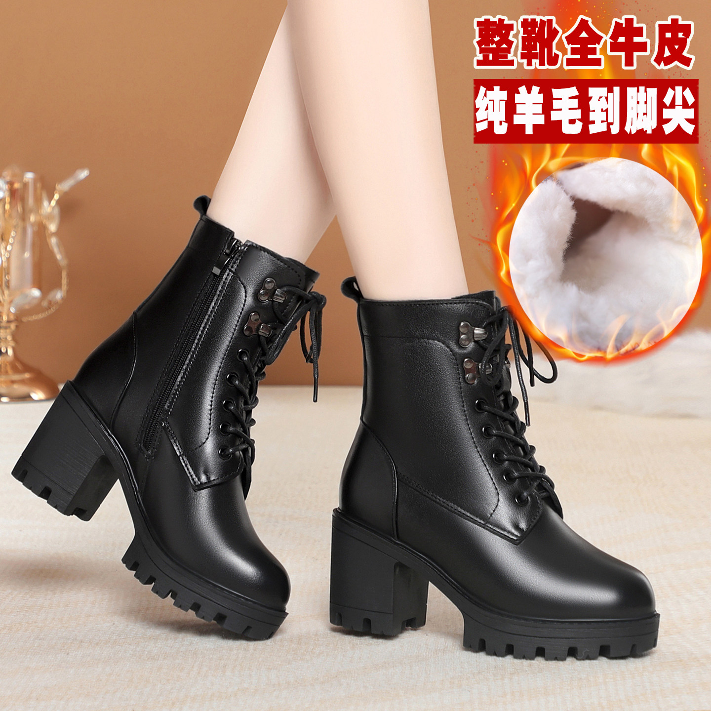 高跟马丁靴女款冬季新款女鞋加厚保暖羊毛靴子真皮棉鞋雪地靴皮鞋