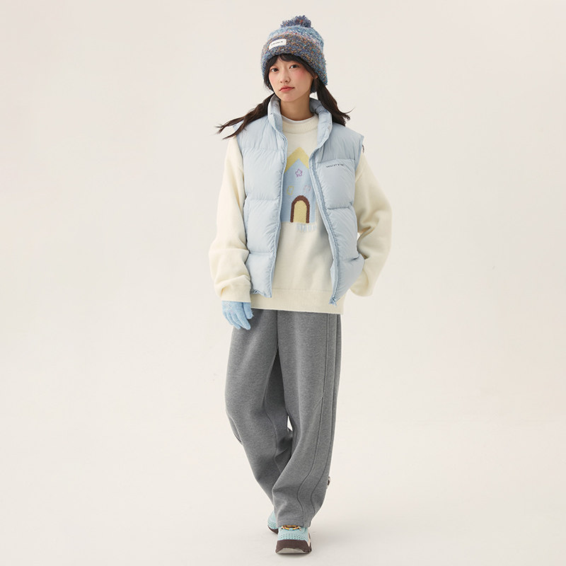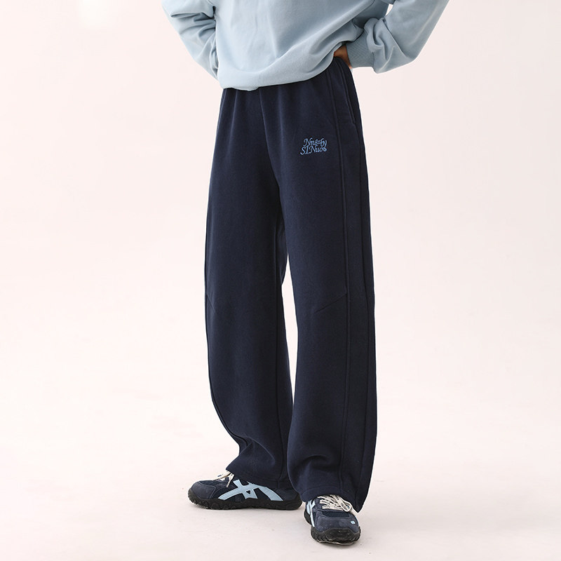 诺诺公主S1N初中生绣花微弯刀裤女春秋加绒美式学院休闲阔腿裤子