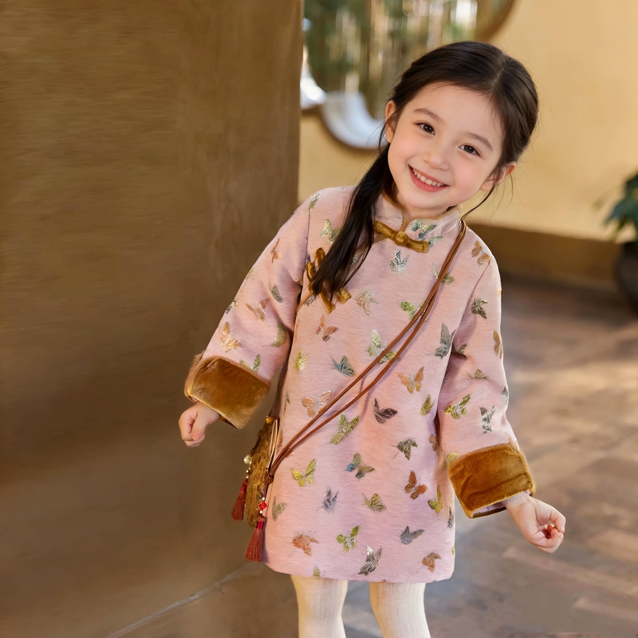 女童冬春季拜年服儿童旗袍加绒新中式加厚国风宝宝过年唐装连衣裙