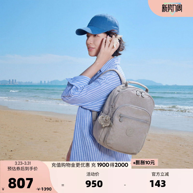 Kipling男女款2026春夏新款大容量出游首尔电脑双肩包书包|SEOUL