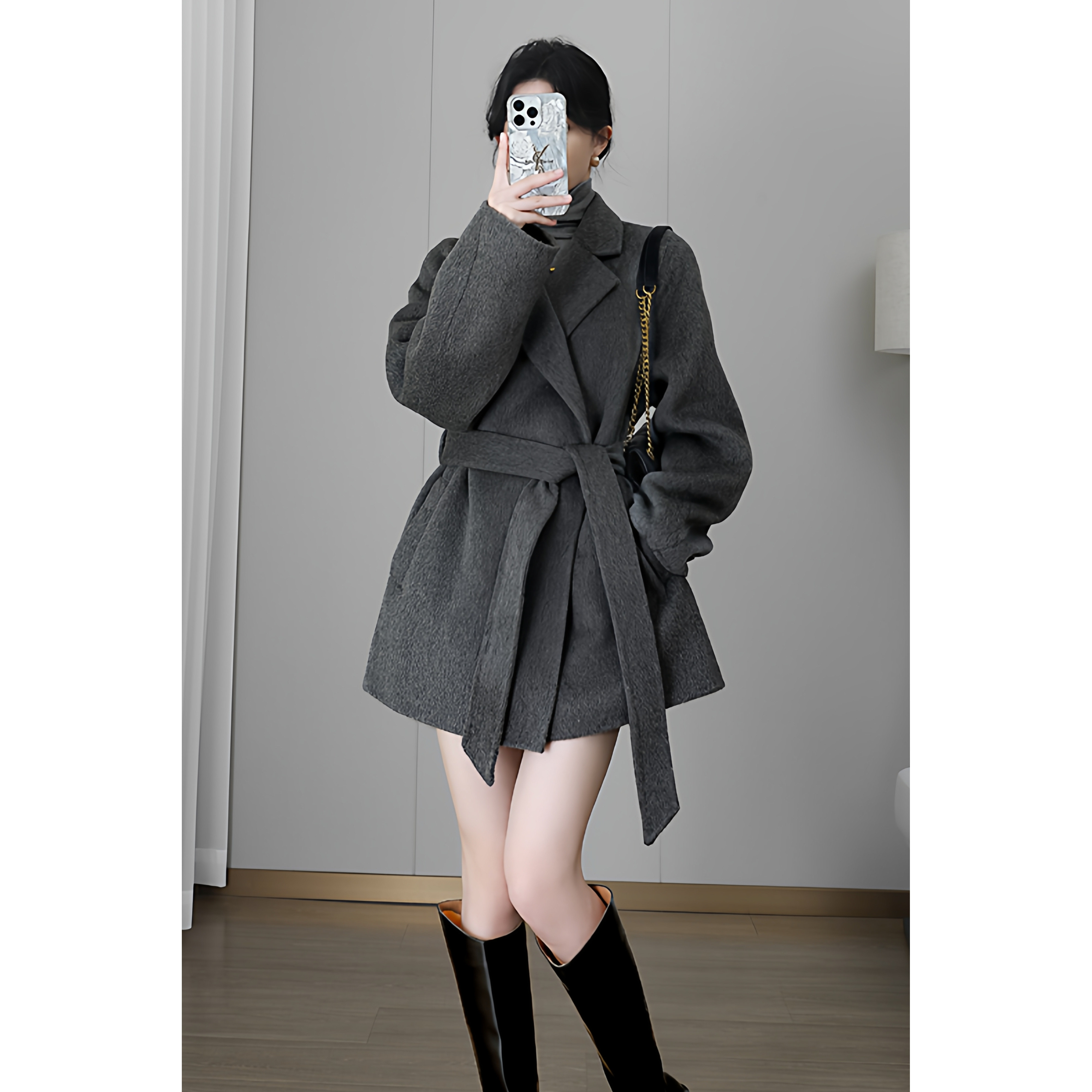 灰色大衣短款双面羊绒羊毛女2025新款冬季小个子双面呢呢子外套