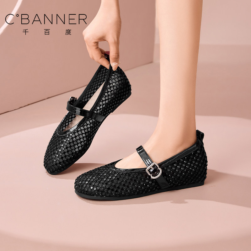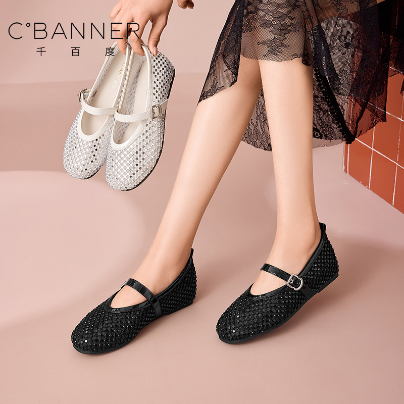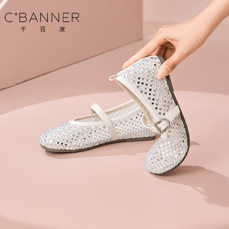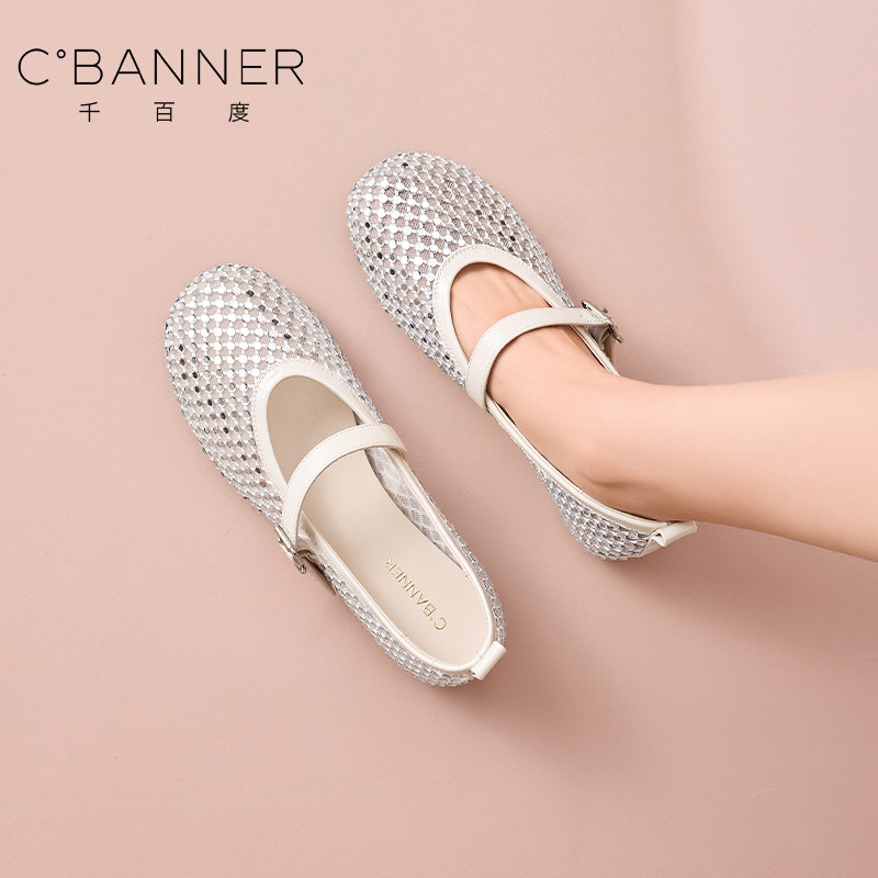 千百度春夏镂空编织浅口单鞋女平底软底透气单鞋不累脚百搭女鞋