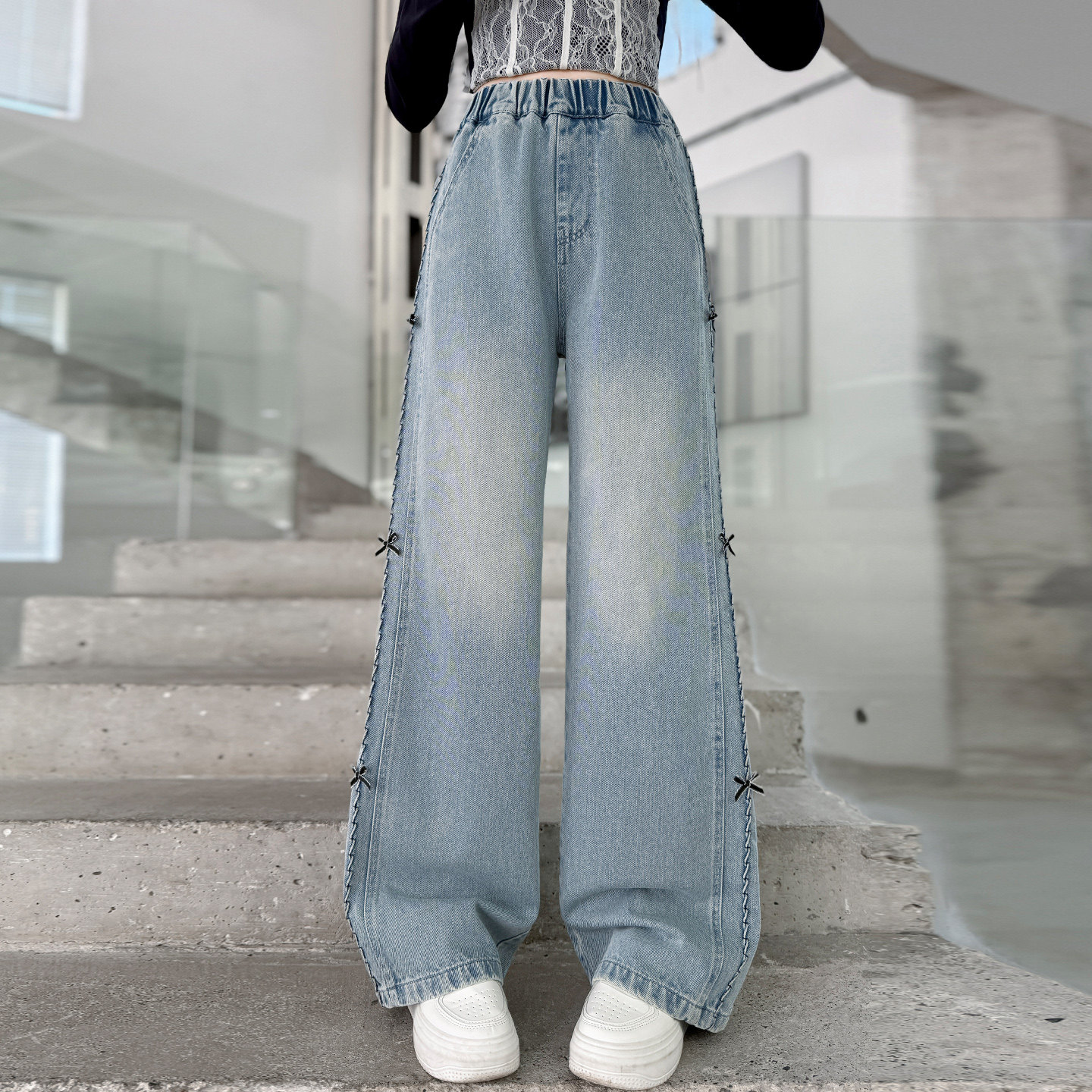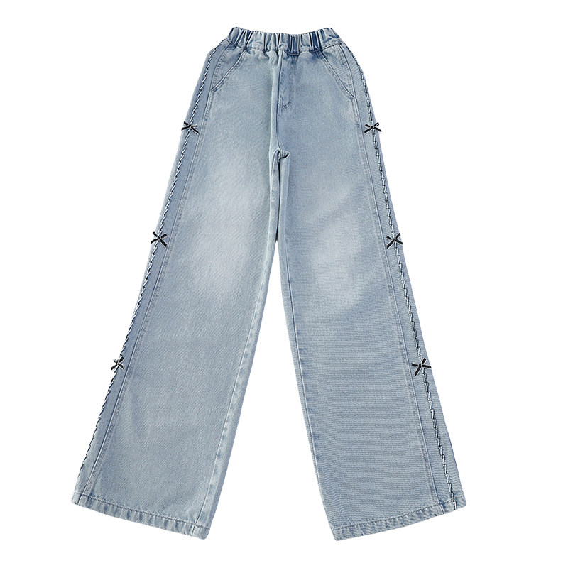 儿童牛仔裤女童裤子春装2026新款青少年直筒裤春季女孩阔腿裤大童
