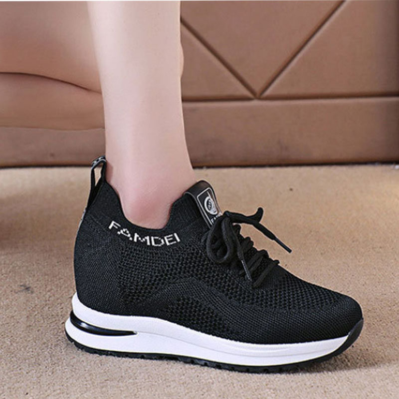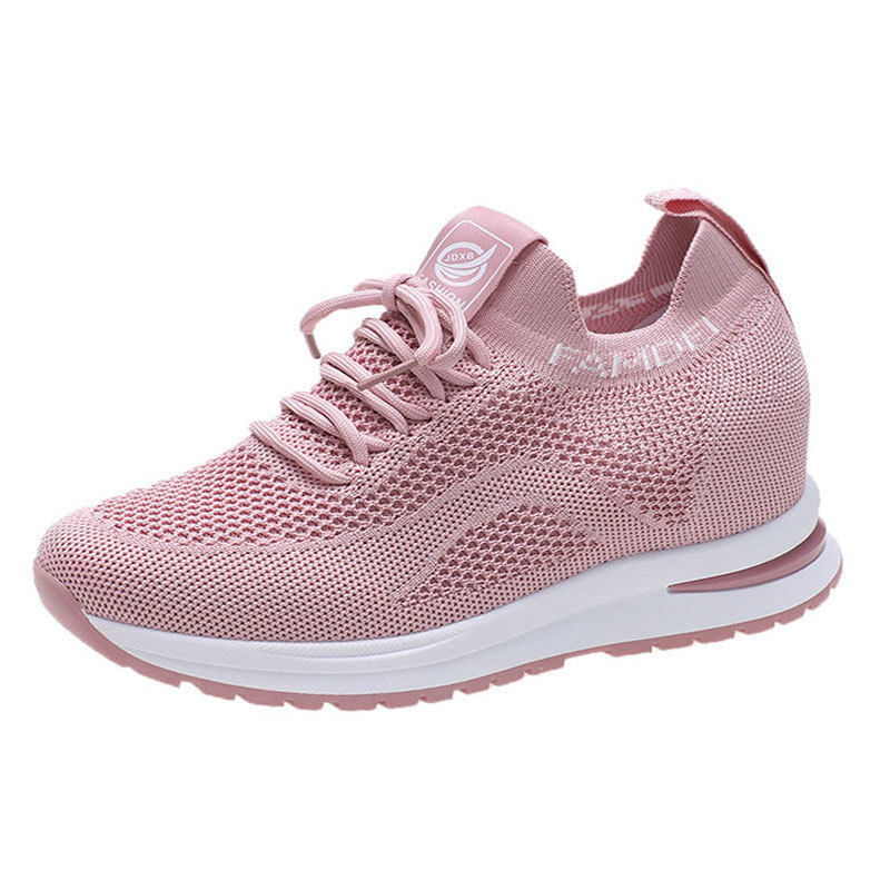 秋季内增高网面透气小白鞋女休闲显瘦广场跳舞黑色弹力飞织袜子鞋
