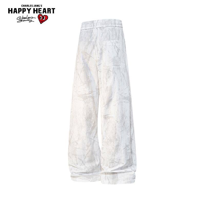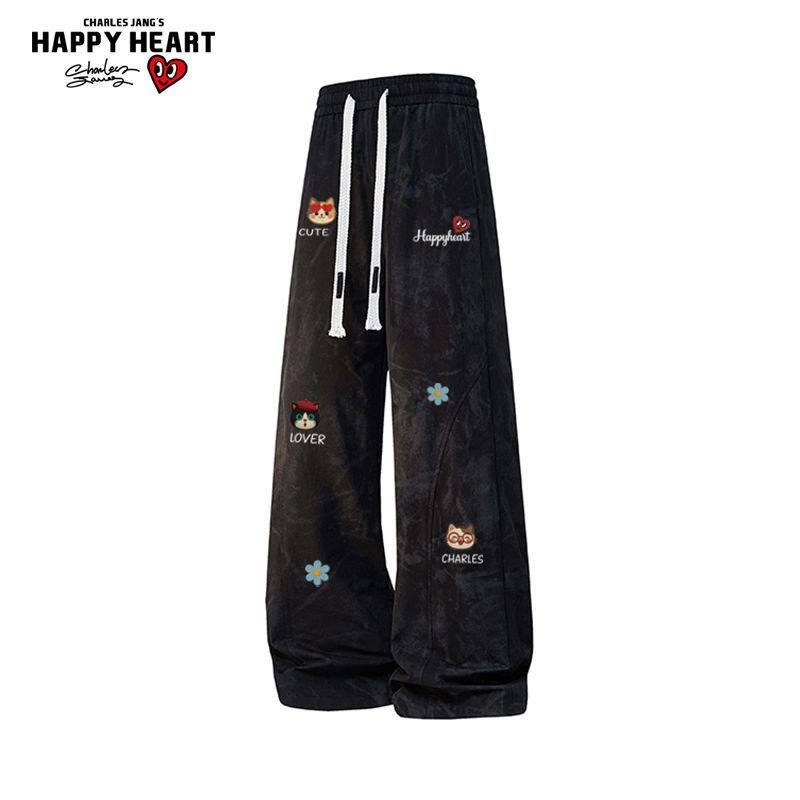 311线报网描述:查尔斯桃心趣味小猫扎染潮流直筒裤男女新款