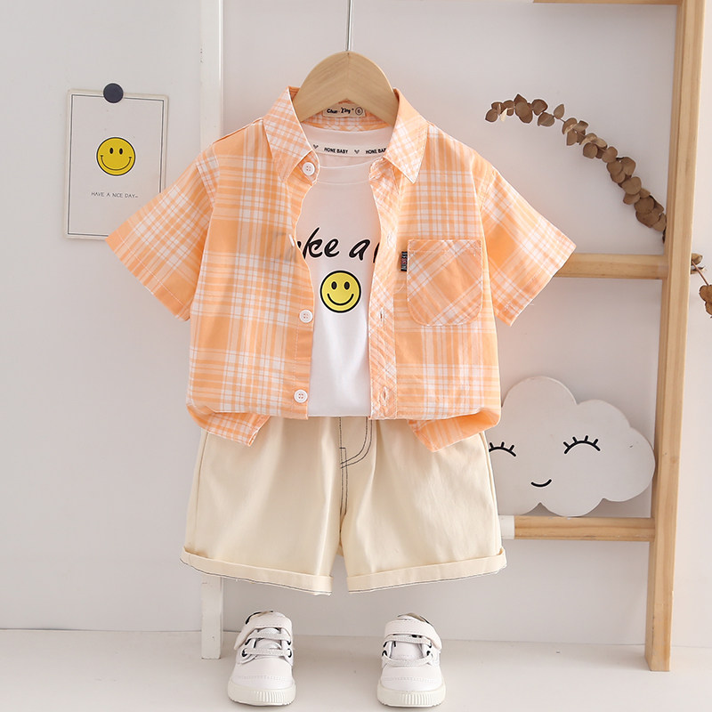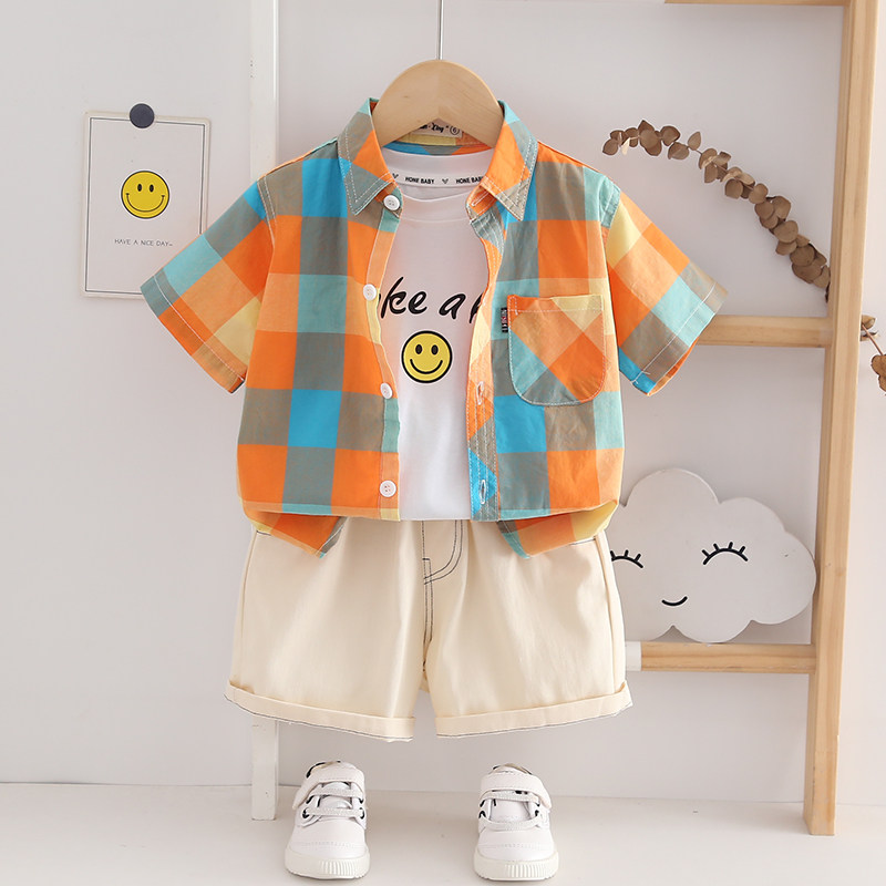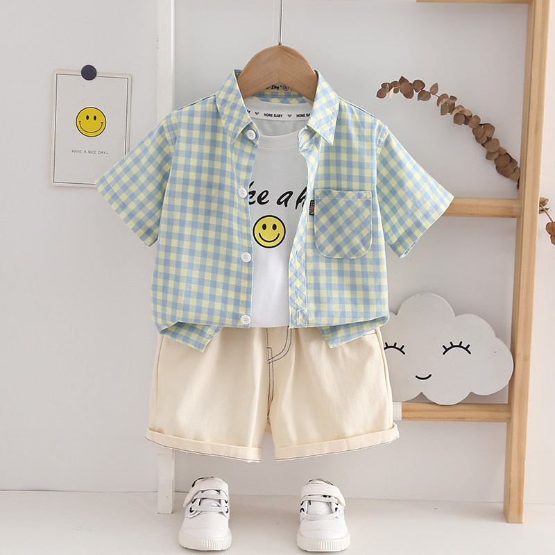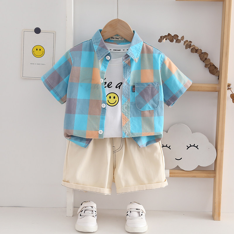 A类全棉 男童短袖衬衫薄款透气2-10岁儿童休闲格子衬衣男孩半袖潮