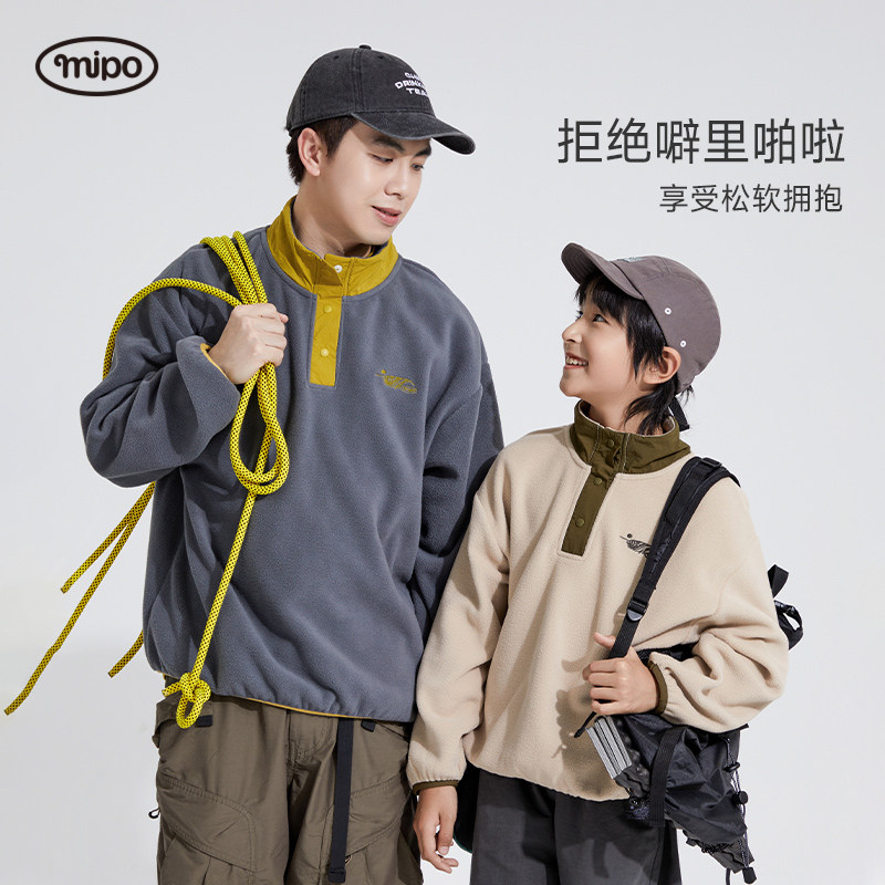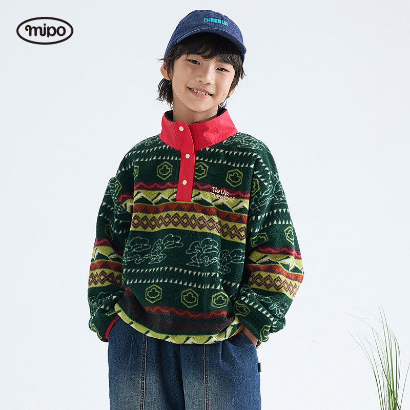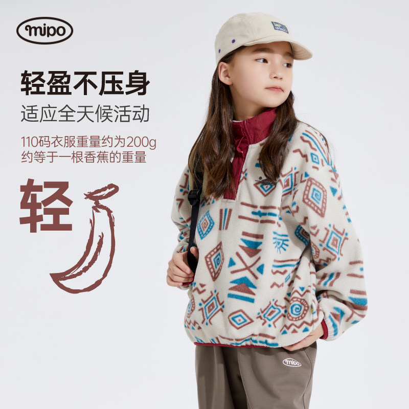 mipo冬季儿童摇粒绒卫衣男女童保暖印花冬装户外抓绒上衣抗静电