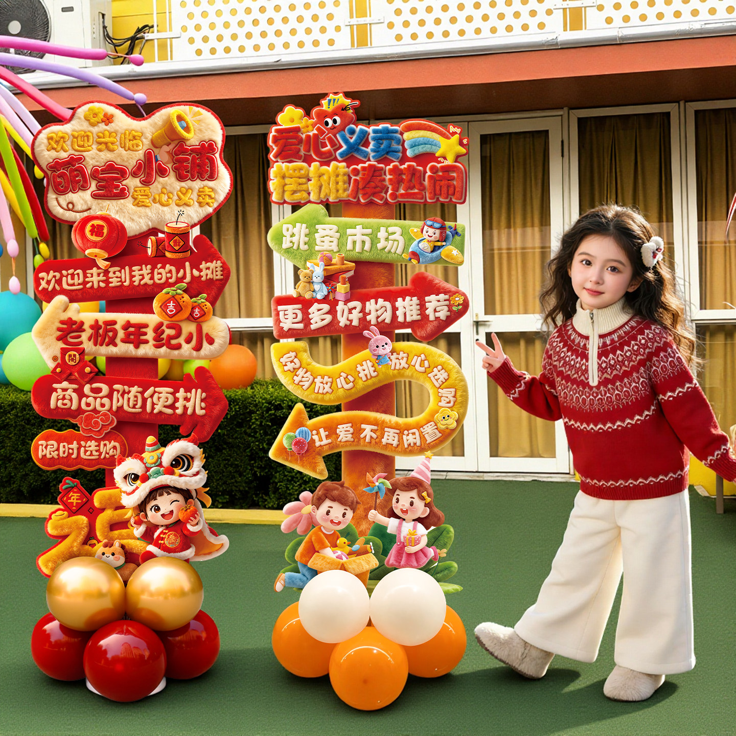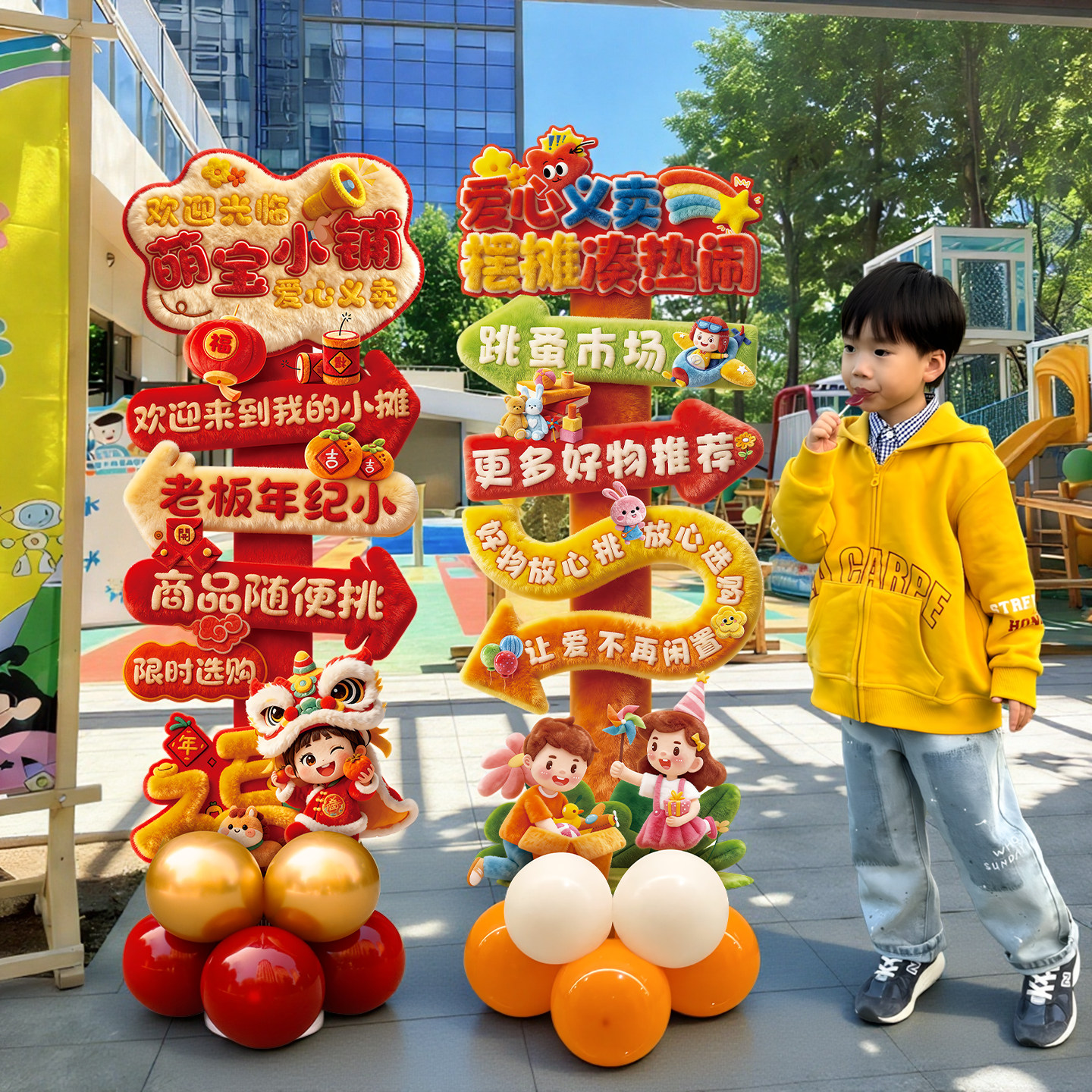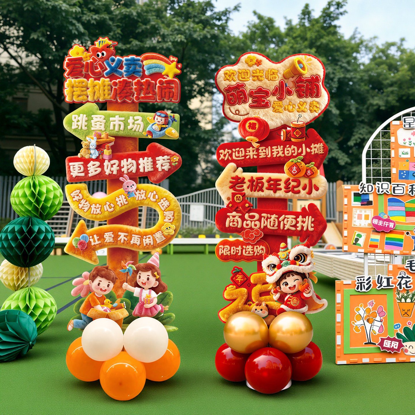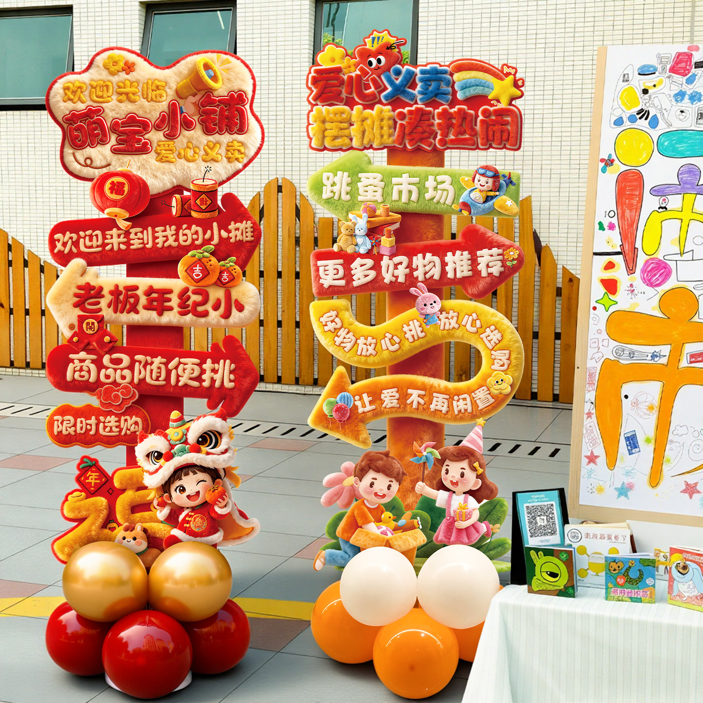 六一儿童节学校义卖摊位装饰跳蚤市场场景布置kt板集市摊位迎宾牌