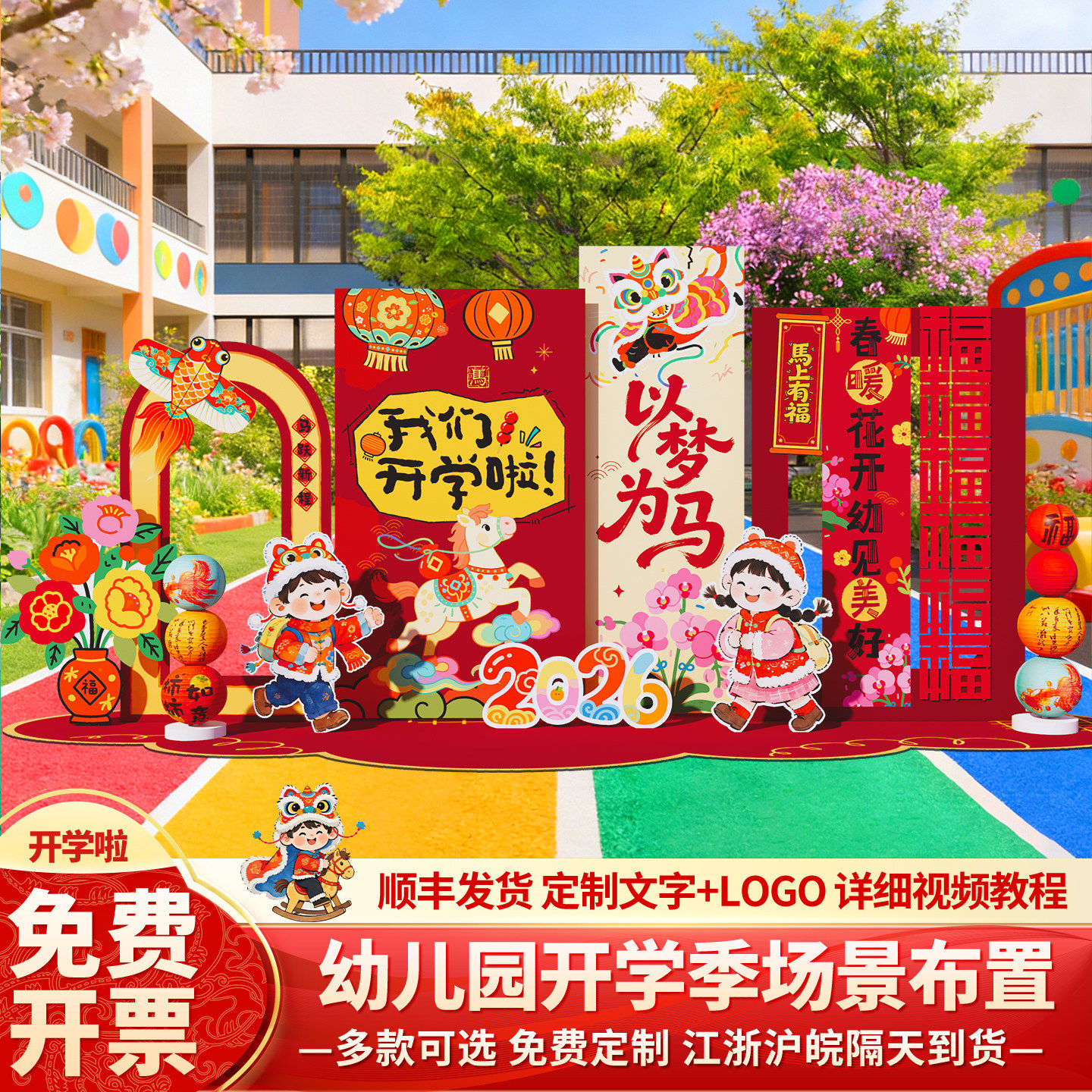 61六一儿童节幼儿园开学仪式感氛围布置装饰场景新学期背景kt展板