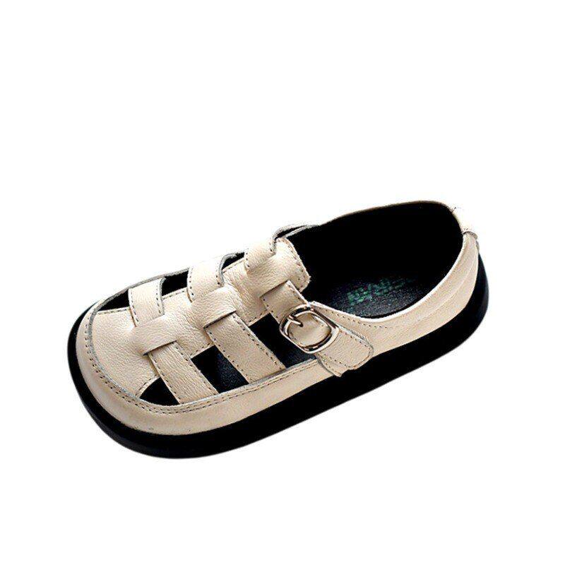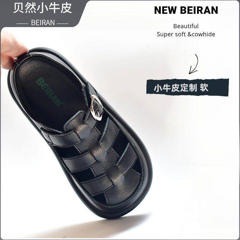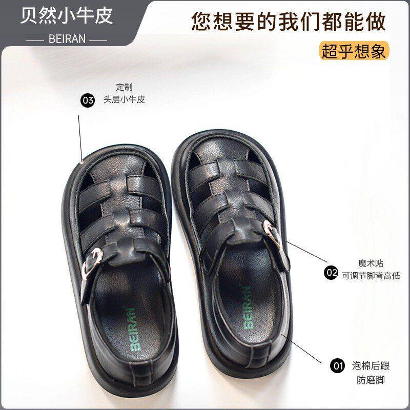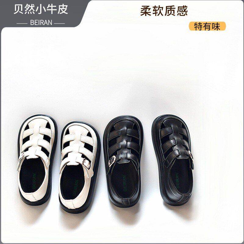 儿童半凉鞋漏洞罗马男女童黑色白色皮鞋真皮透气防滑软底春夏包头