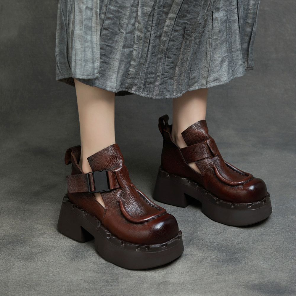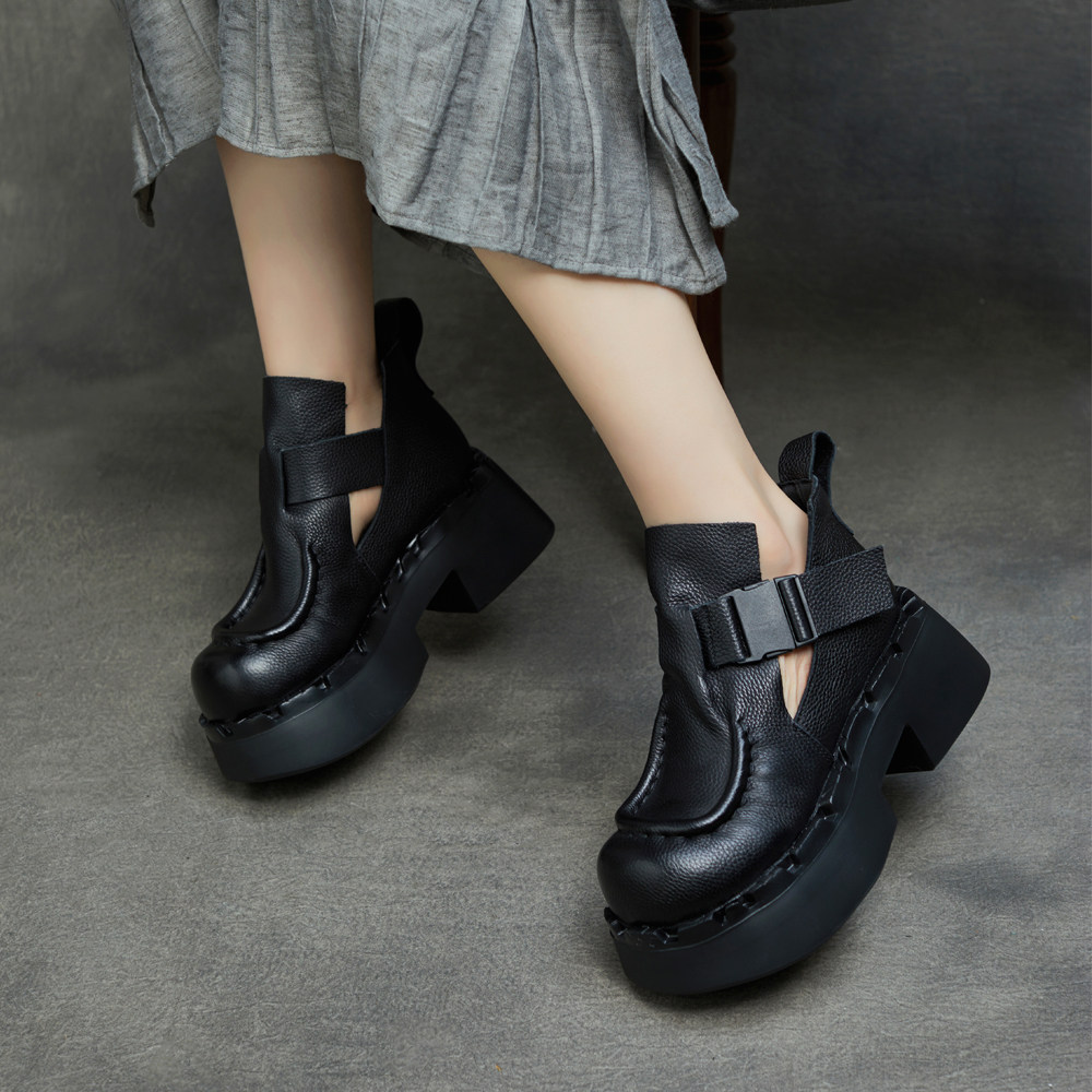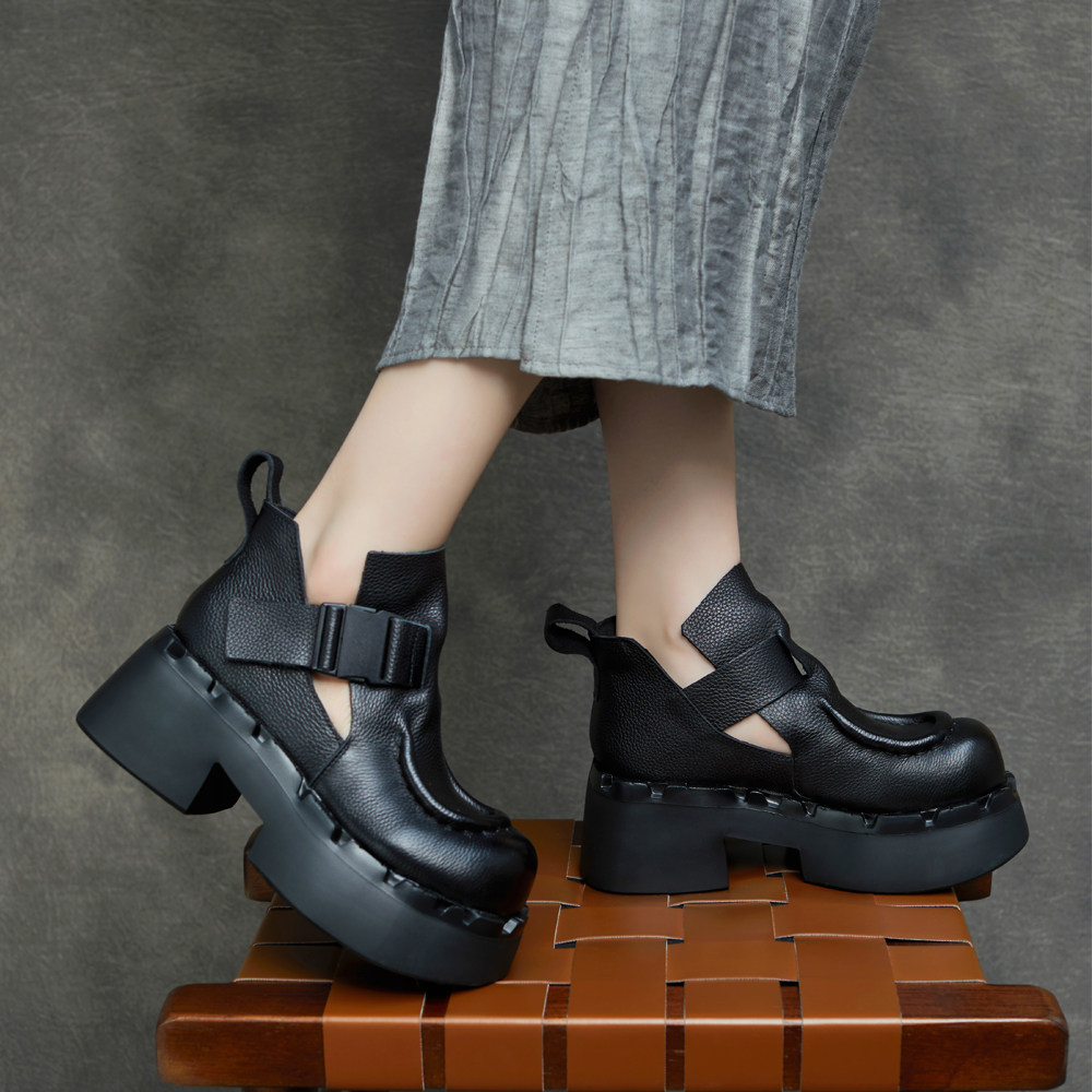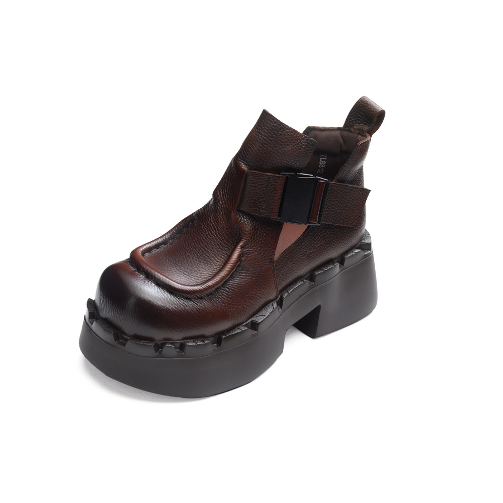 2026春季新款英伦风复古厚底短靴女春秋坡跟增高罗马靴小个子女鞋