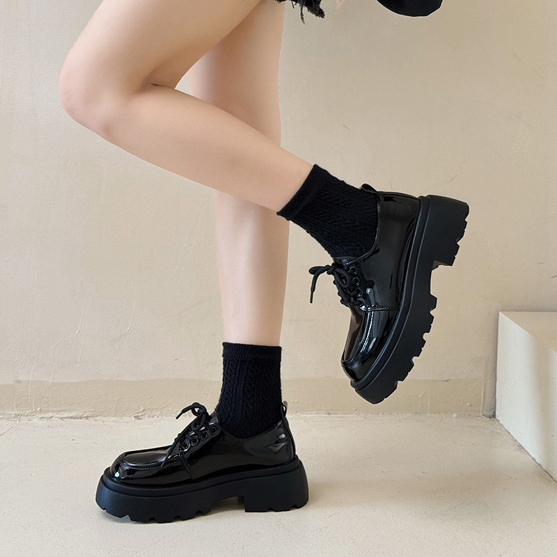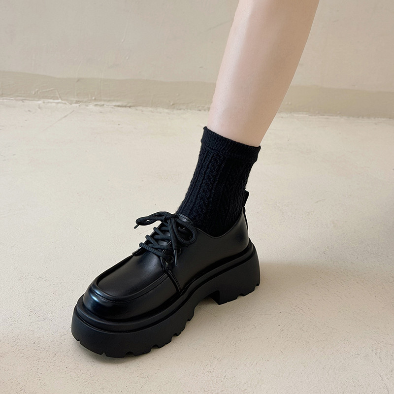松糕小皮鞋女英伦风2024新款春秋配裙子jk单鞋黑色系带厚底乐福鞋