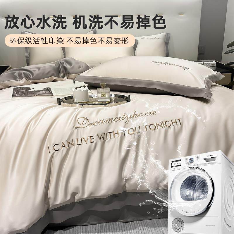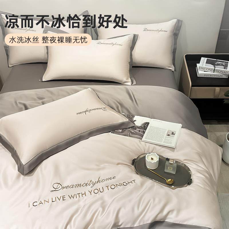 冰丝四件套夏款丝滑裸睡被套轻奢高级床单床上三件套夏天凉感睡眠