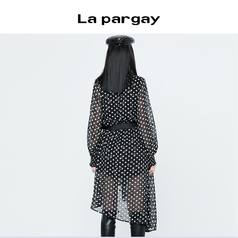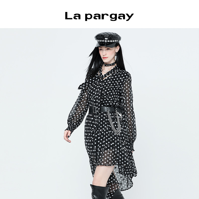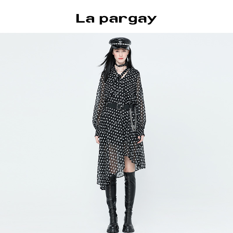 纳帕佳2023秋冬新款设计感小众雪纺连衣裙长袖收腰甜美不规则裙子