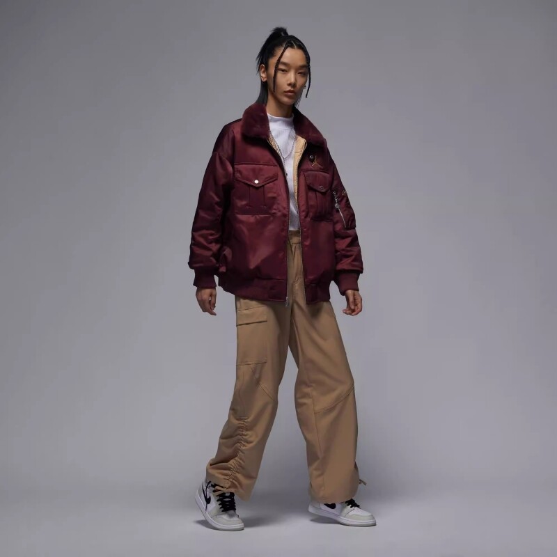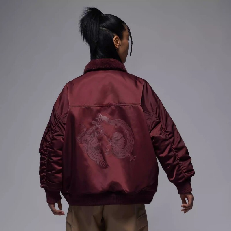 NIKE耐克外套女龙年新年款翻领刺绣红色飞行员夹克棉服FZ6449-619