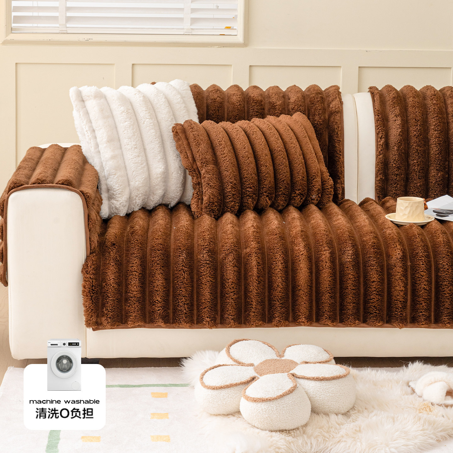 毛绒沙发垫2025新款秋冬季加厚皮沙发坐垫防滑直拍沙发盖布高级感
