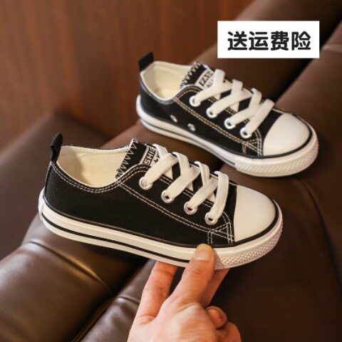 儿童低帮系鞋带帆布鞋童鞋休闲男童板鞋女童球鞋宝宝鞋百搭小白鞋