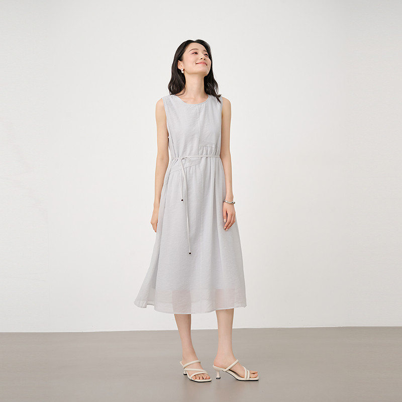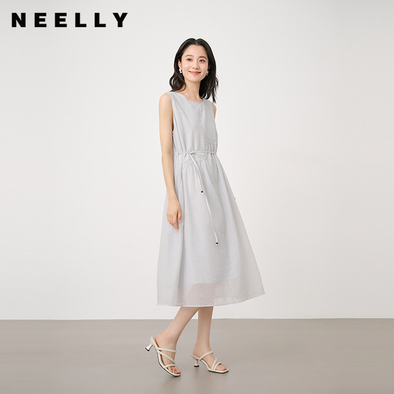 NEELLY纳俪商场同款夏季新款气质休闲连衣裙女简约收腰百搭长裙