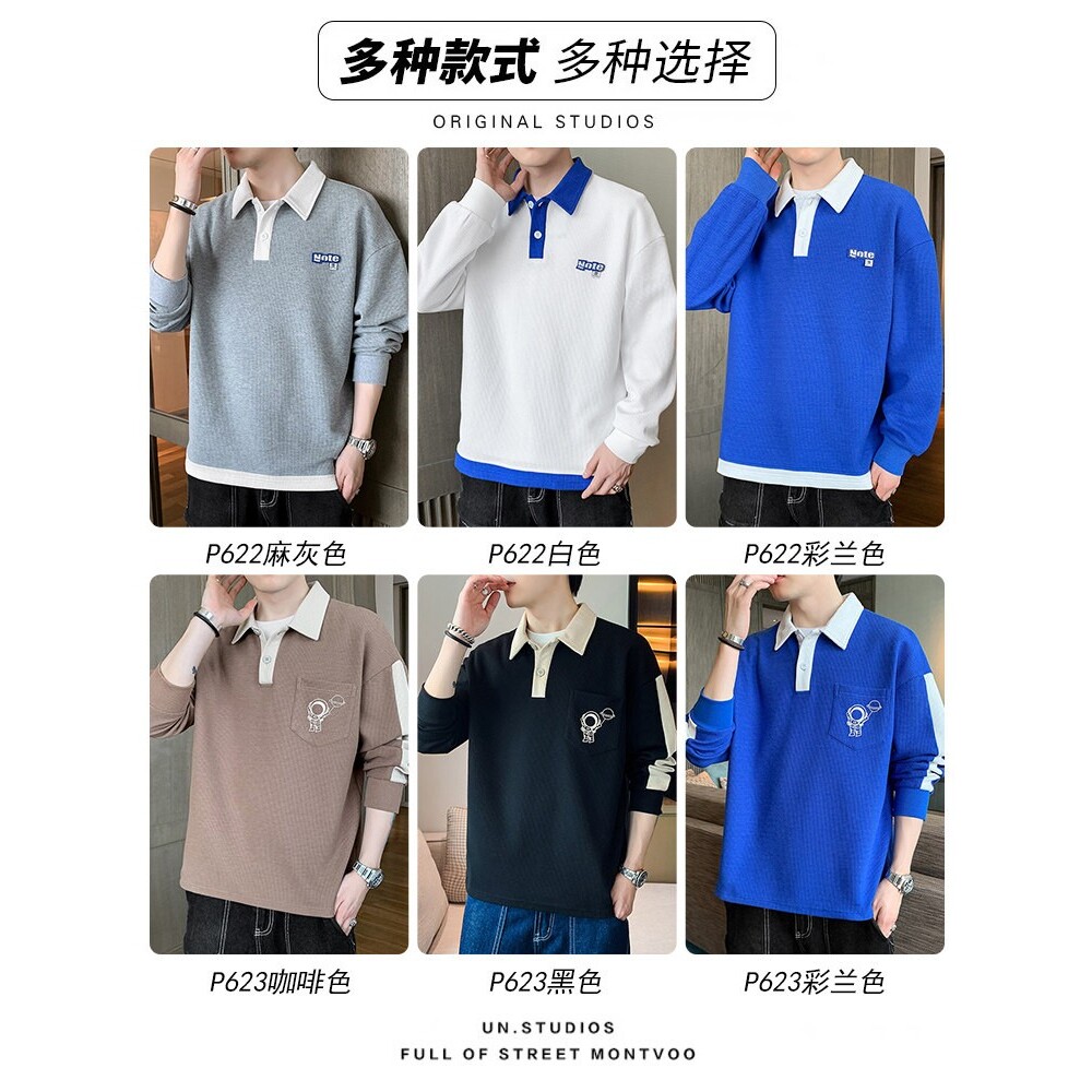 长袖t恤男士春季薄款翻领休闲上衣服男款春秋宽松卫衣打底polo衫