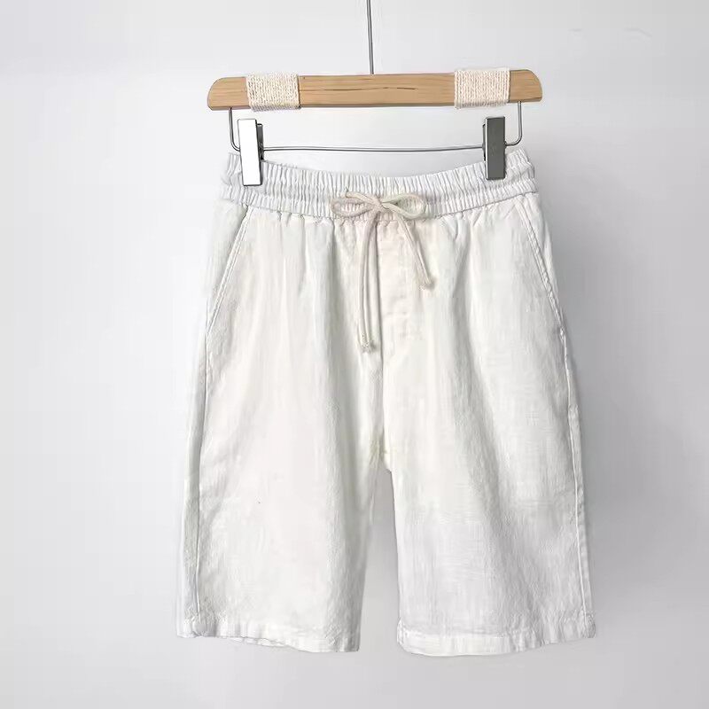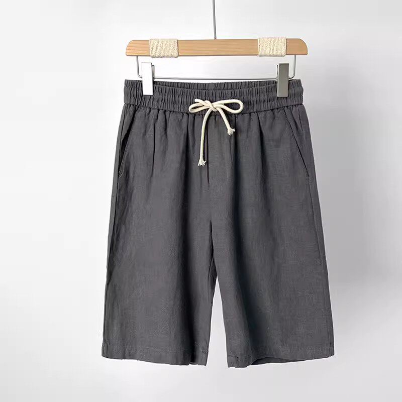 亚麻短裤男款夏季薄款冰丝棉麻中裤夏天男士简约抽绳休闲五分裤子