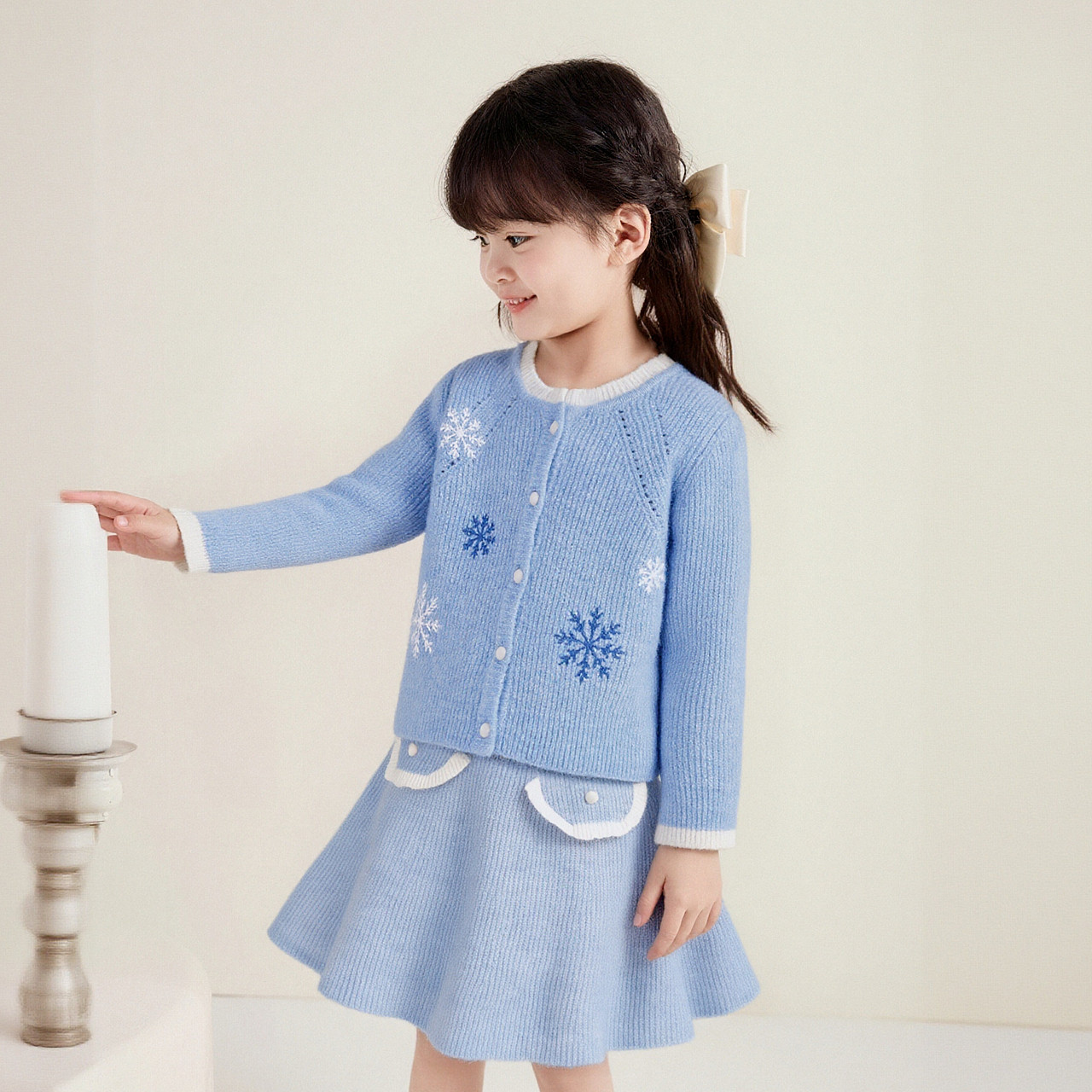 笛莎女童套装冬季新款儿童女孩宝宝洋气针织衫两件套毛衣半身裙子