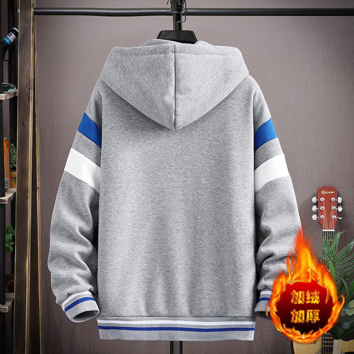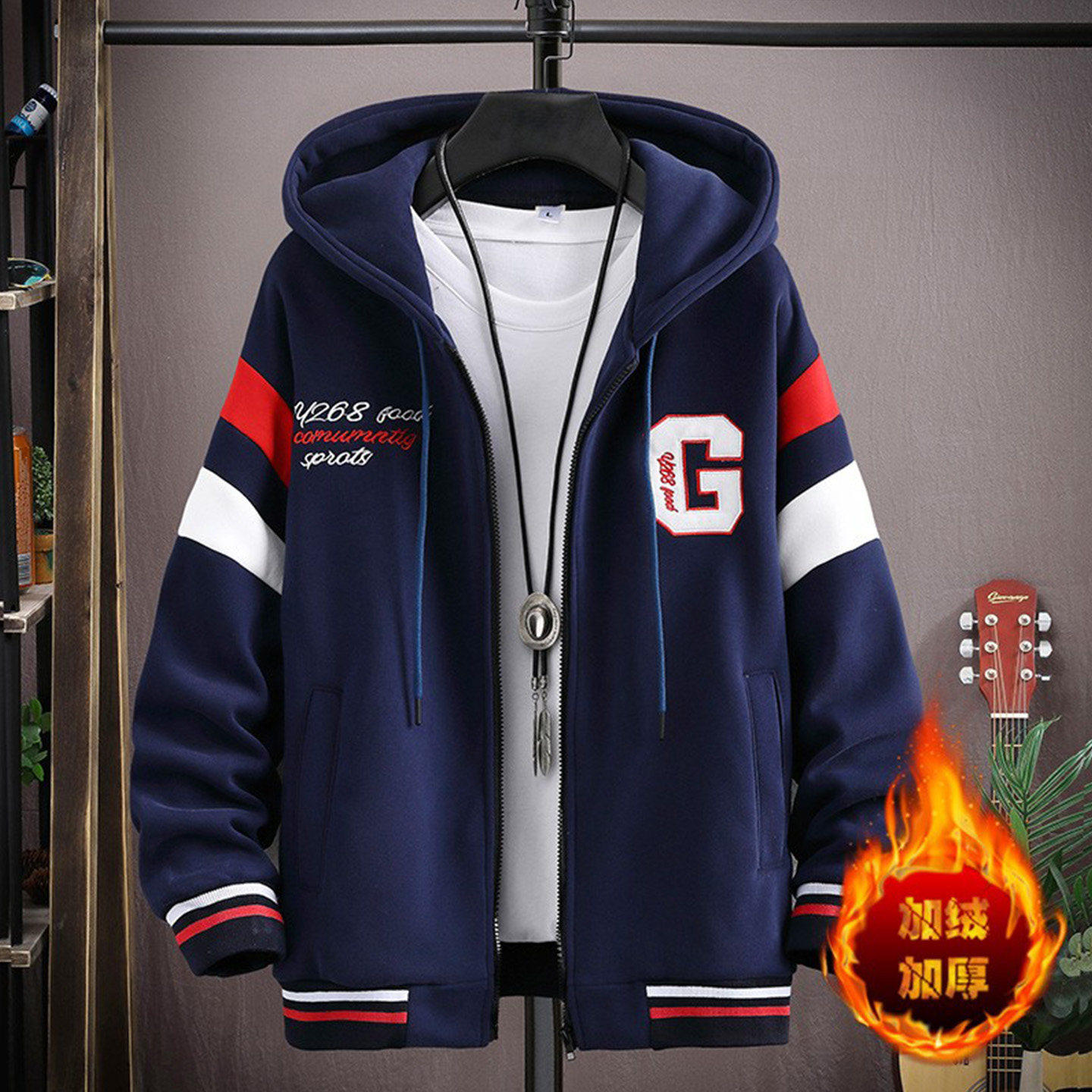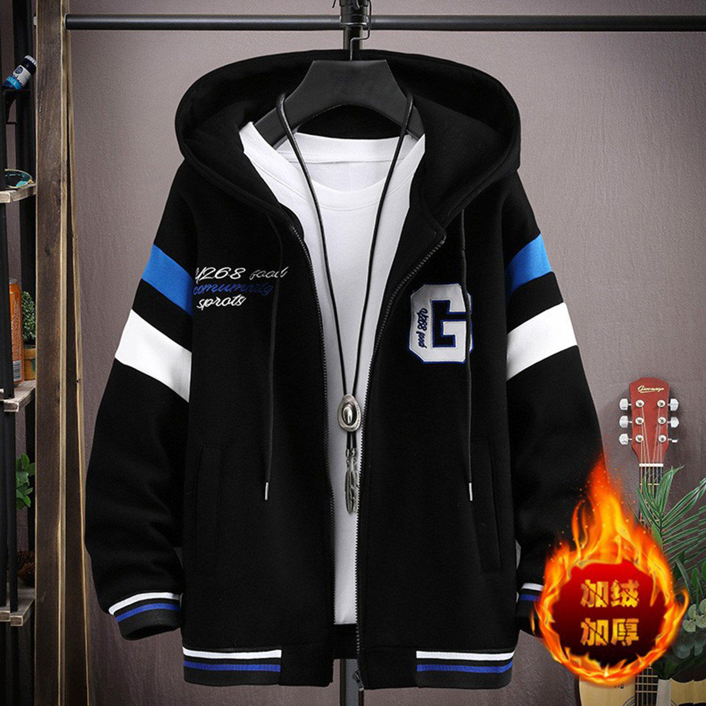 开衫连帽卫衣男秋冬大童潮流青少年初中高中学生刺绣纯棉加绒外套