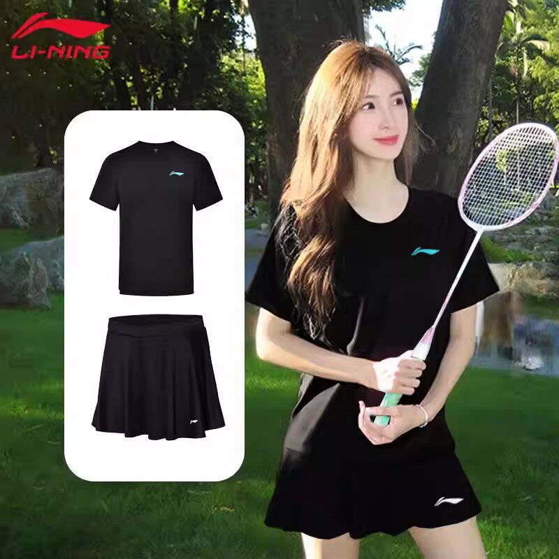 李宁巨好看羽毛球服女2026新款黑色女上衣短袖速干运动服短裙套装