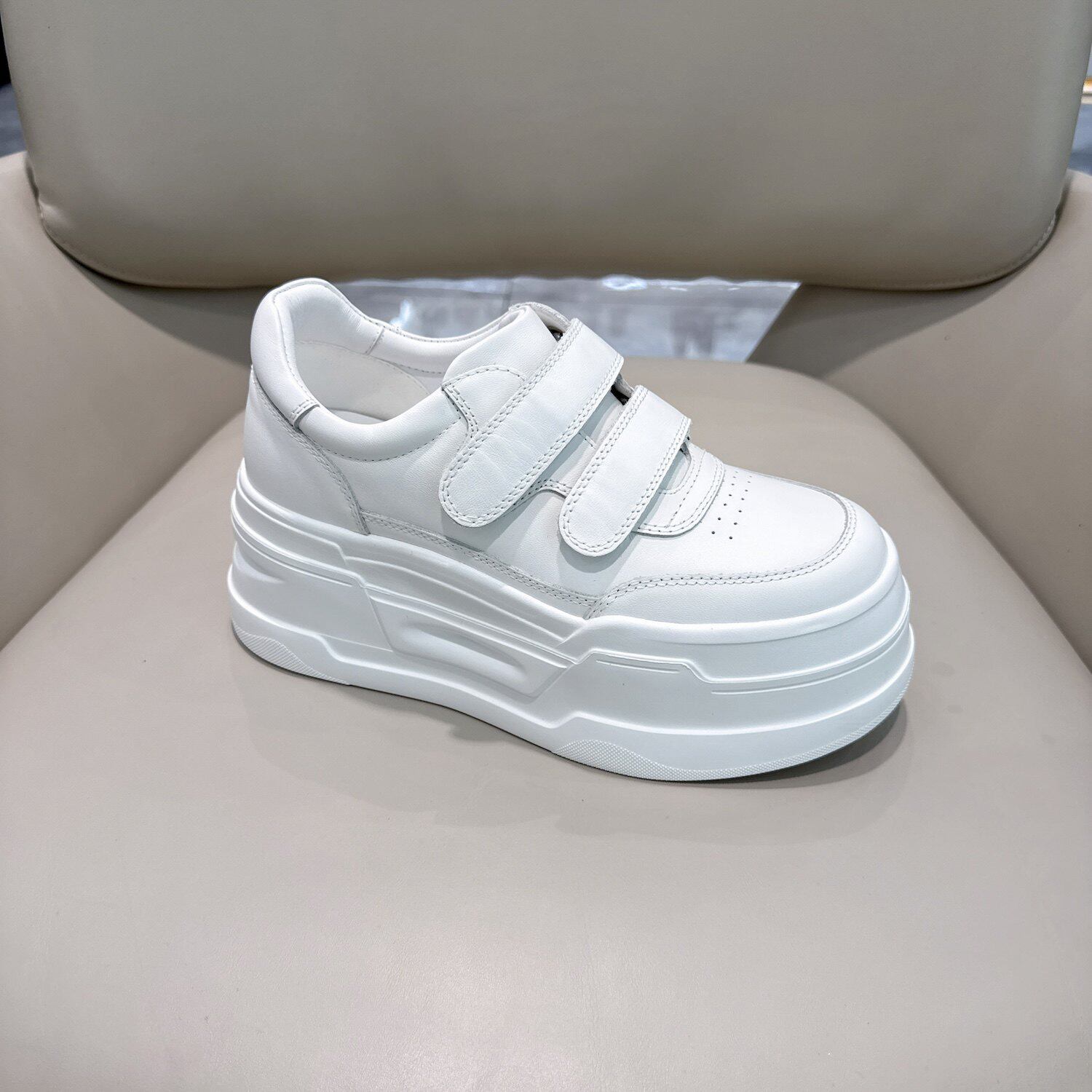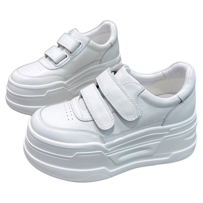 欧货真皮小白鞋女2026新款欧洲站魔术贴小个子白色增高厚底松糕鞋