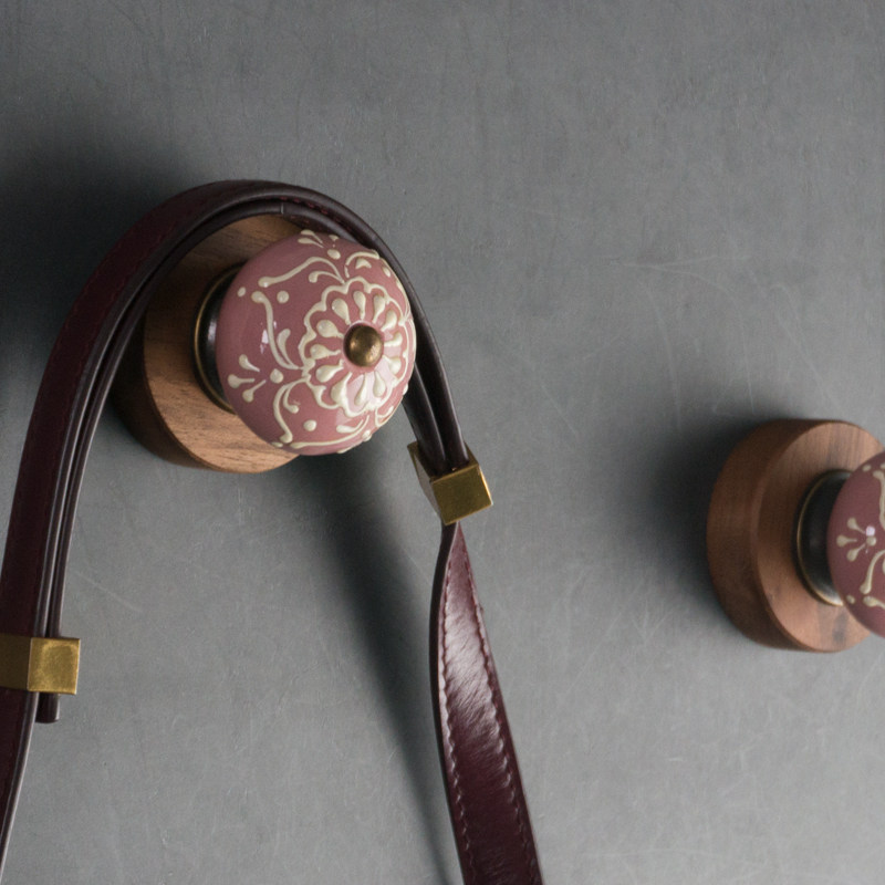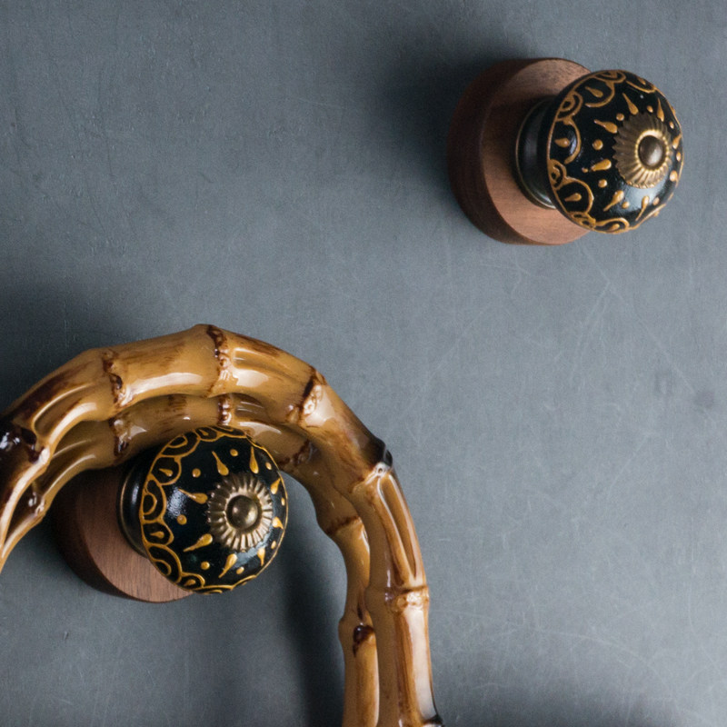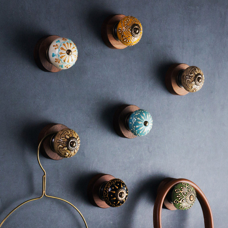 欧式美式乡村复古做旧墙面挂钩胡桃木陶瓷装饰挂钩衣钩玄关挂钩