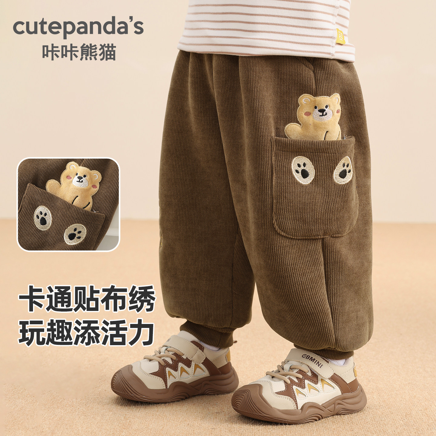 咔咔熊猫男童加绒裤子冬季儿童加厚2025新款冬装女童宝宝保暖长裤