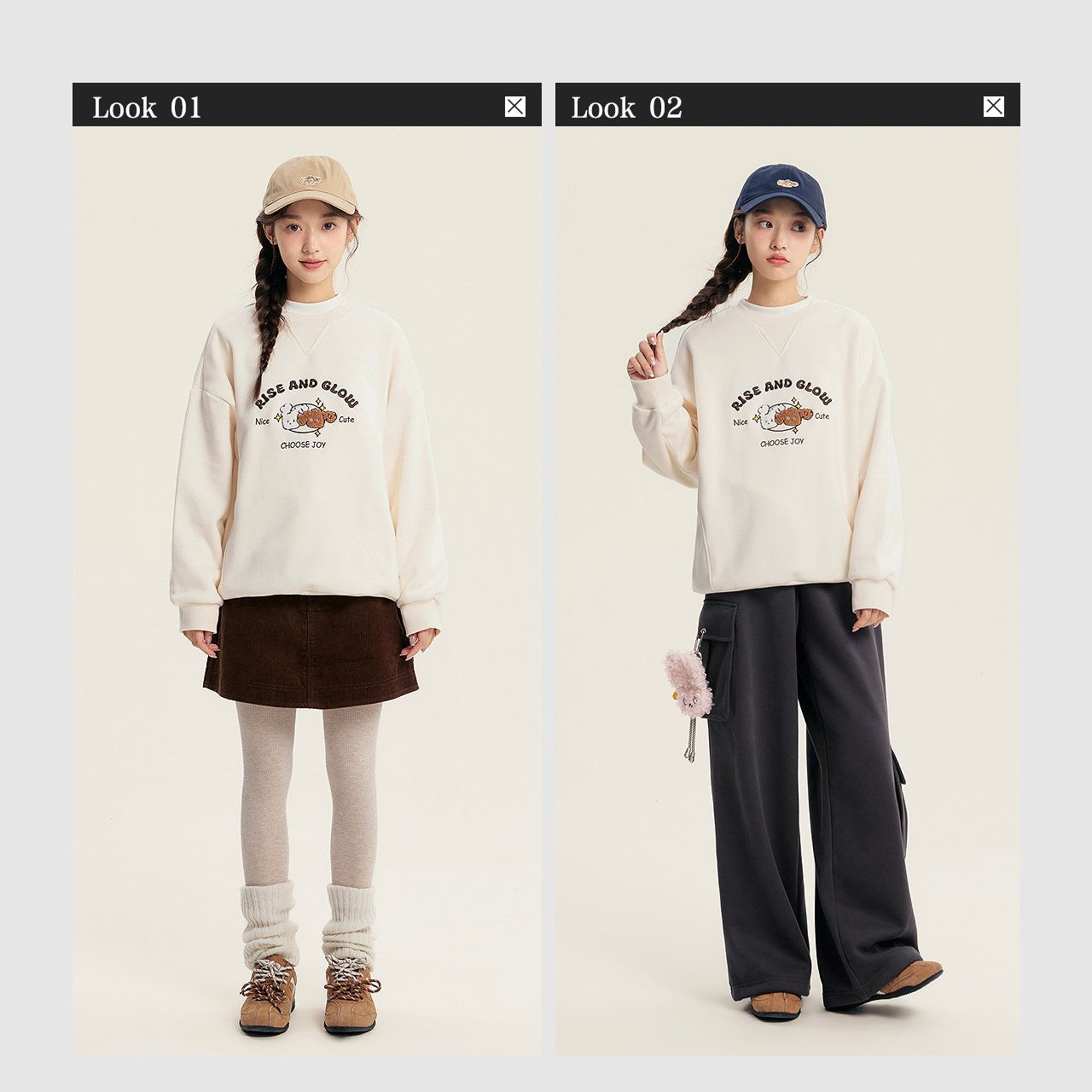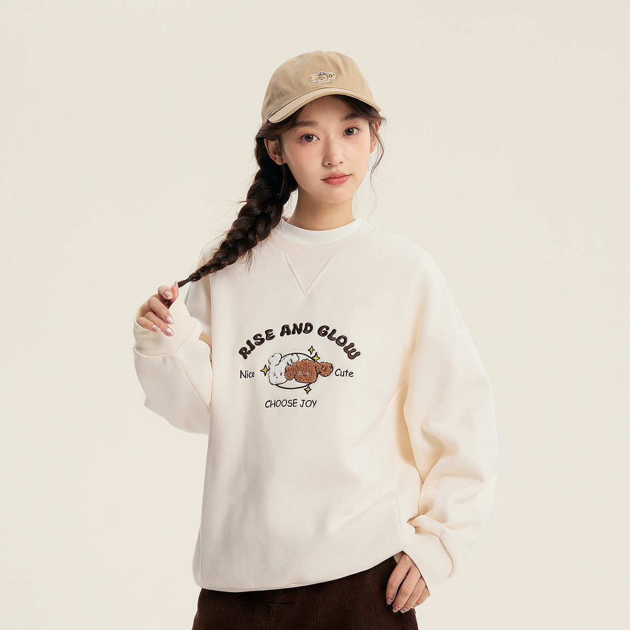 笛莎官旗青少年女孩2025秋冬新款初高中宽松加绒小狗主题图案卫衣