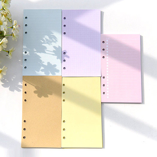活页A5A6六孔替芯可爱彩色道林纸活页本纸内页内芯牛皮纸空白格子
