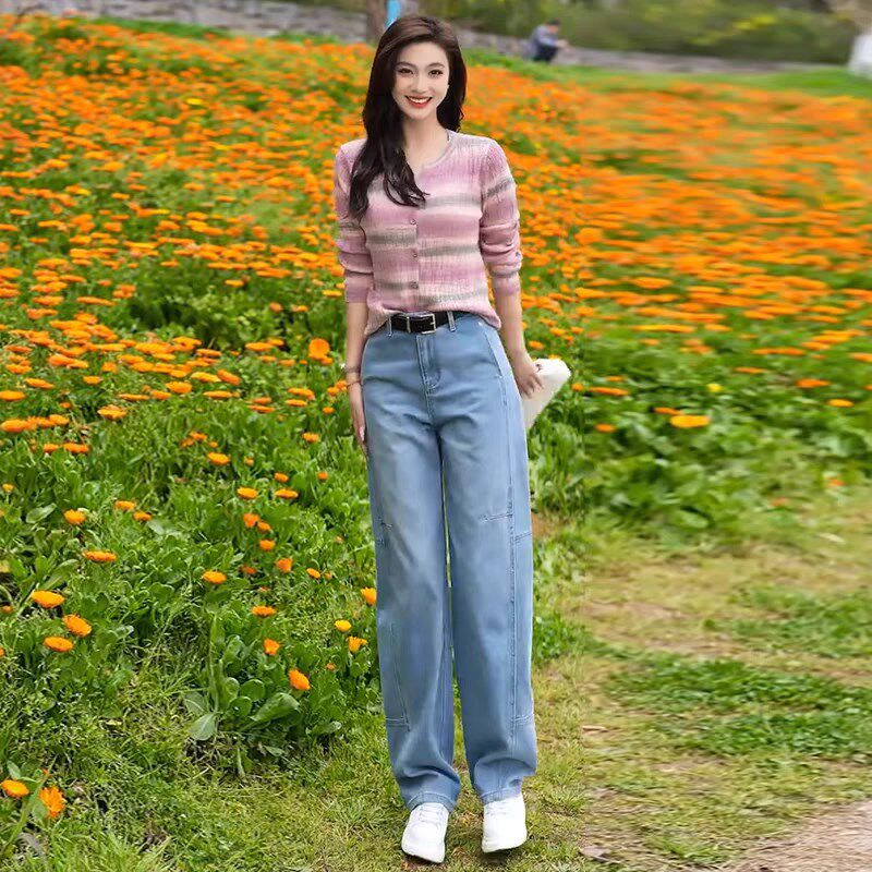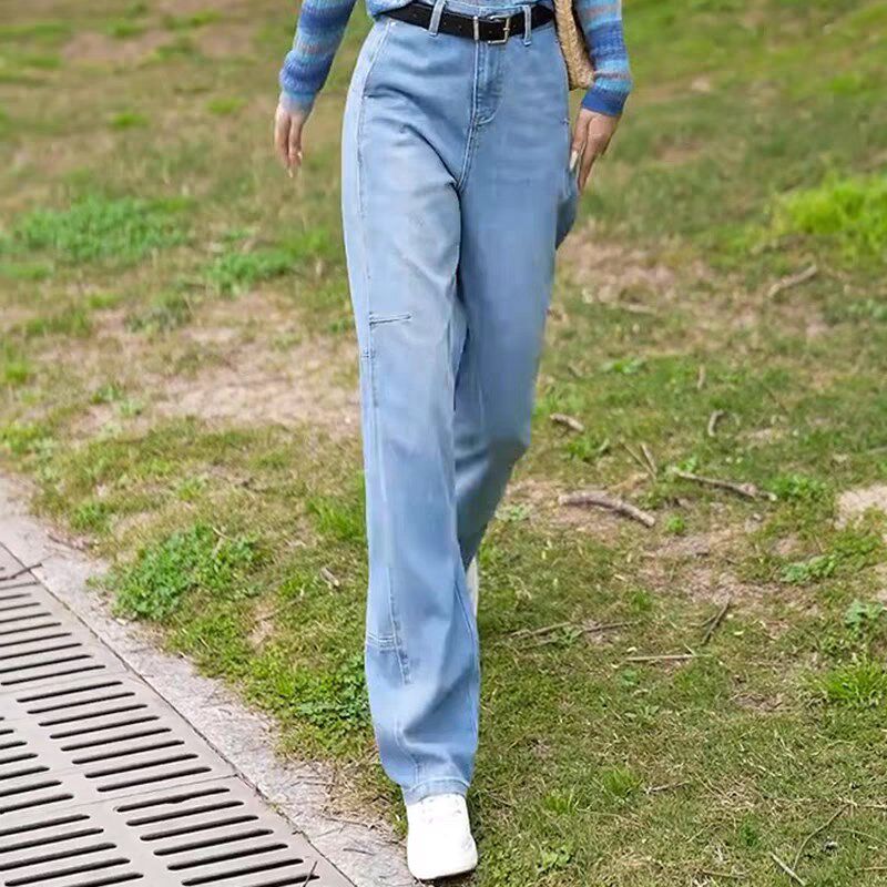 浅色牛仔裤春夏裤子女款2025新款爆款胖mm大码显瘦阔腿镰刀弯刀裤