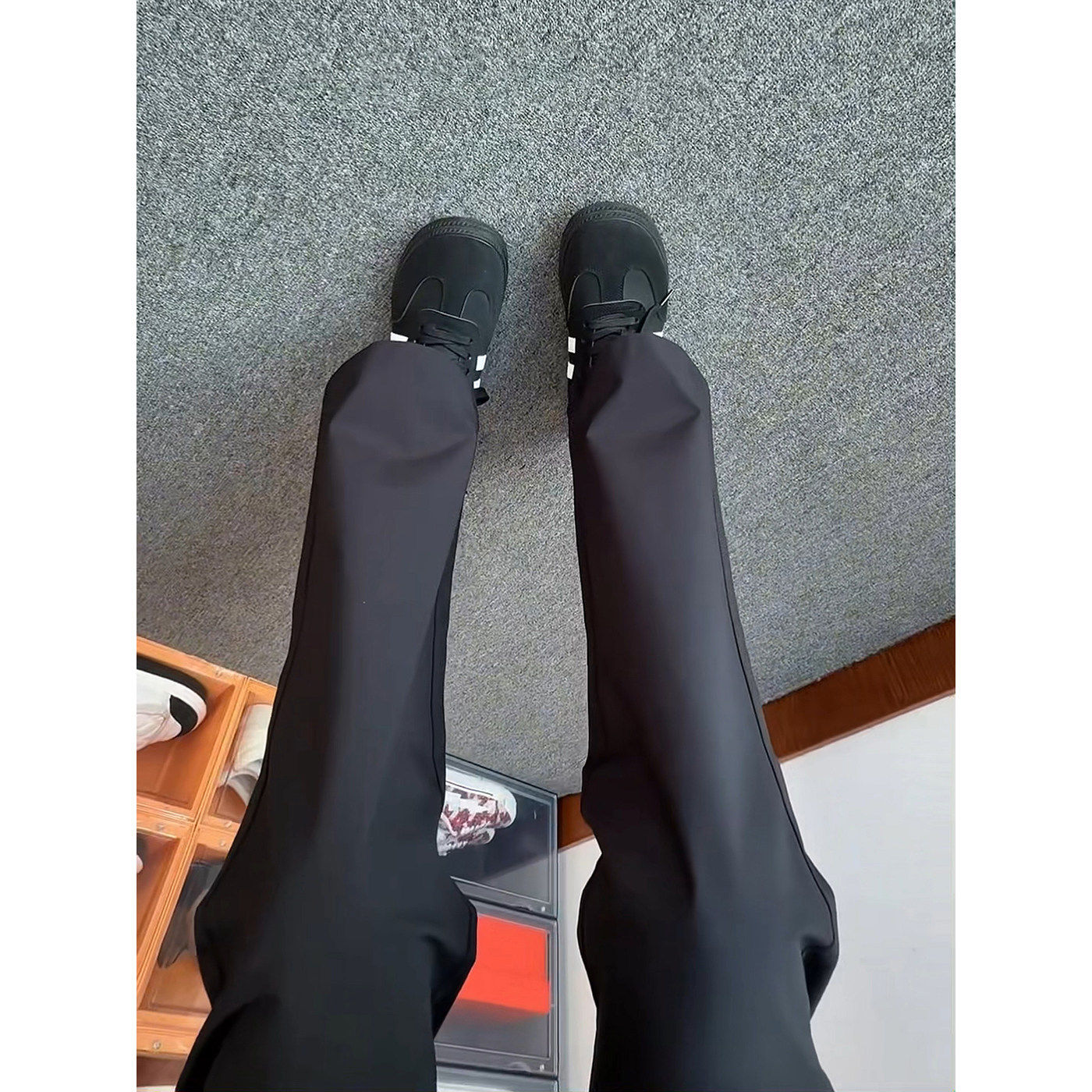 黑色直筒微喇西裤男款春季痞帅高级感裤子cleanfit垂感休闲西装裤