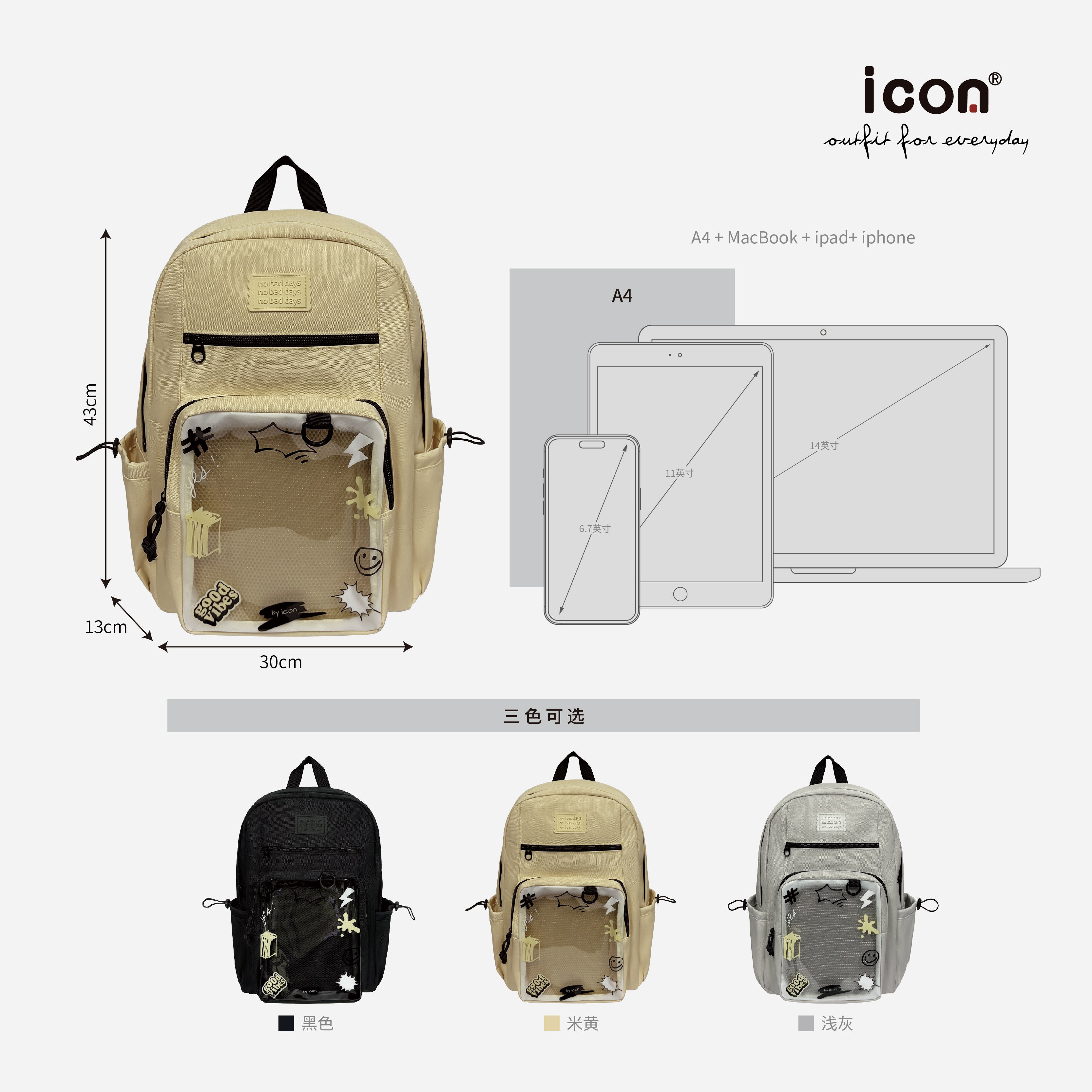 痛包双肩背包大容量书包女生透明学生党二次元娃包