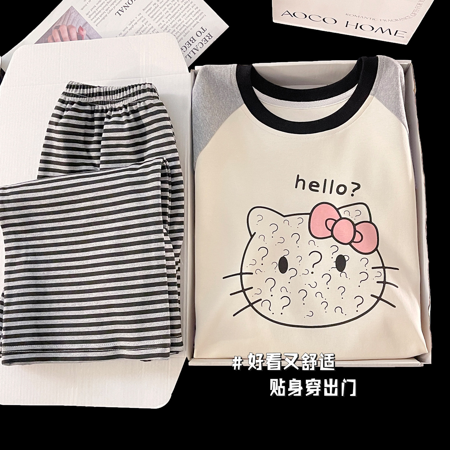 大码睡衣女款高级感2026春装新款长袖女士可外穿家居服凯蒂猫套装